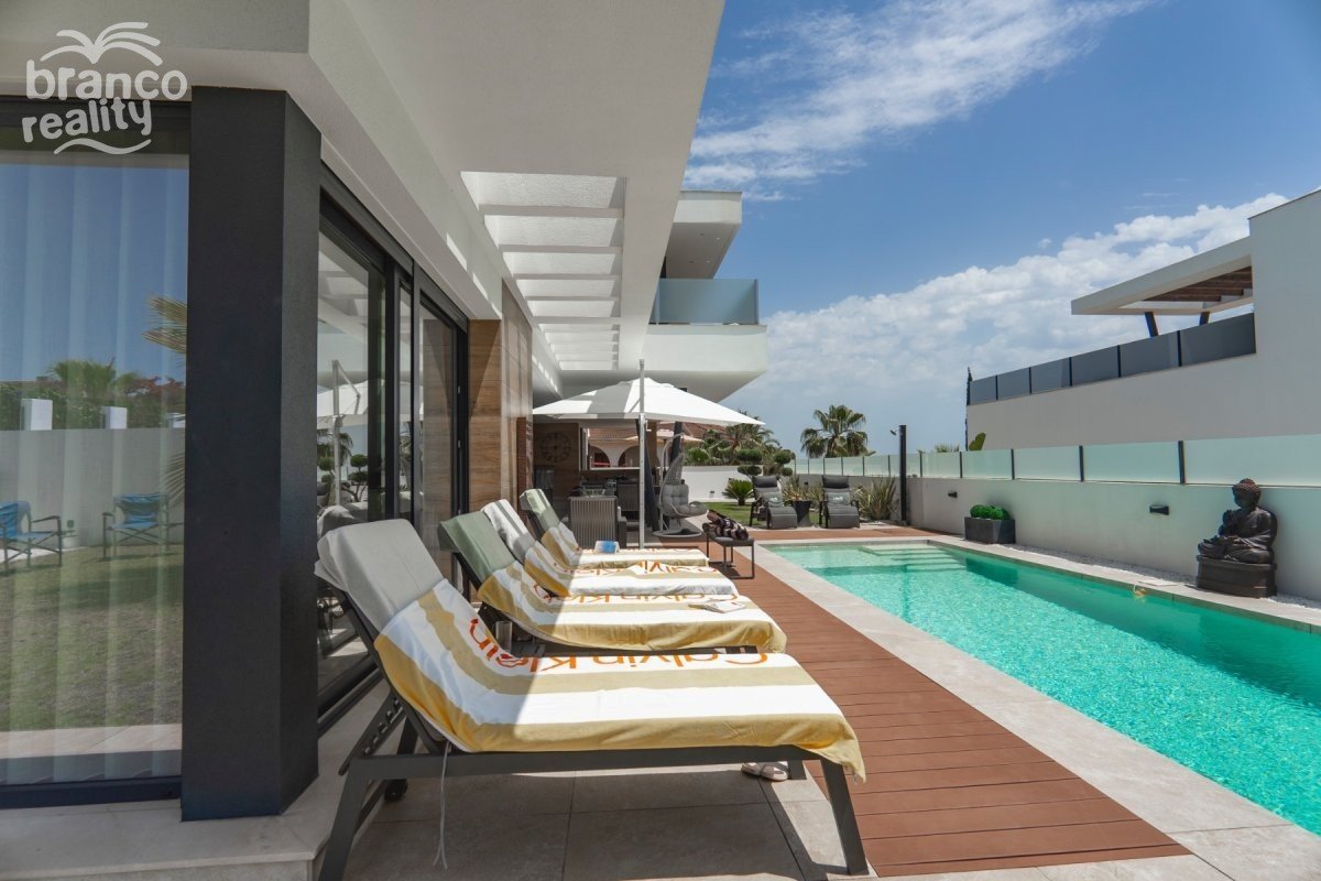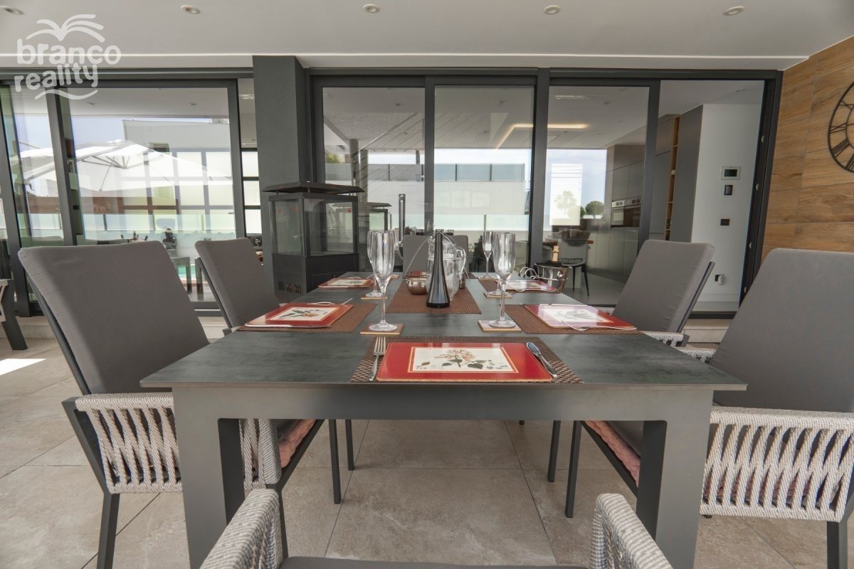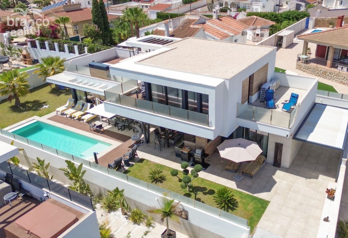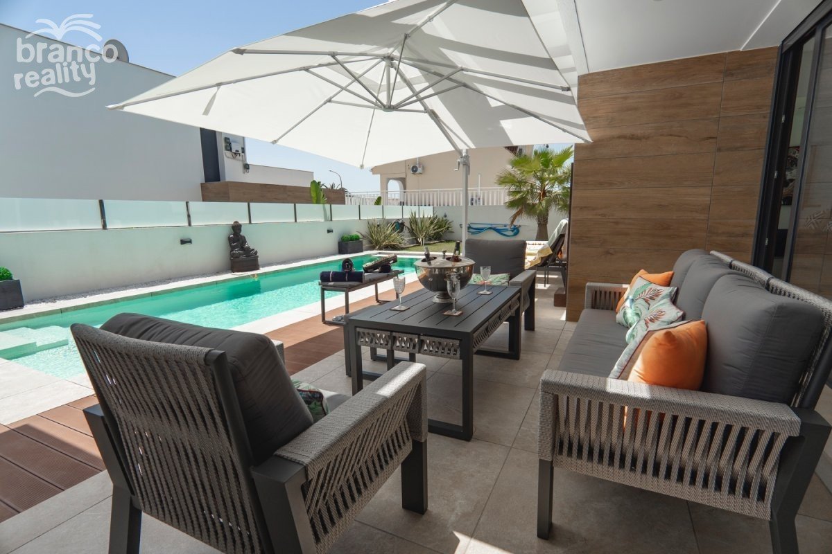 Situated in the heart of Ciudad Quesada, this exquisite south-facing villa offers a harmonious blend of luxury and convenience. Boasting four spacious bedrooms and four modern bathrooms, the property is designed for comfortable family living. Its prime location ensures easy access to local amenities, including shops, restaurants, and recreational facilities. The villa features a contemporary open-plan living area that seamlessly connects to a state-of-the-art kitchen, equipped with high-end appliances. Large windows flood the space with natural light, creating a warm and inviting atmosphere.Each bedroom is thoughtfully designed, offering ample storage and en-suite facilities, ensuring privacy and comfort for all residents. Outside, the property boasts a private swimming pool surrounded by a beautifully landscaped garden, perfect for relaxation and entertaining guests. Additional features include a spacious garage, underfloor heating, and a rooftop solarium offering panoramic views of the surrounding area. This villa epitomizes luxury living in one of Costa Blanca's most sought-after locations. Key Features: 4 spacious bedrooms with 4 bathroom of which 3 are en-suitesPrivate swimming pool and landscaped gardenModern open-plan living and dining areaFully equipped contemporary kitchenUnderfloor heating throughout the propertyRooftop solarium with panoramic viewsSpacious parking with private driveway Prime location in Ciudad Quesada town center For more information or to schedule a viewing, please contact Petra Honig at info@petrahonig.com or call +34 966 718 006.