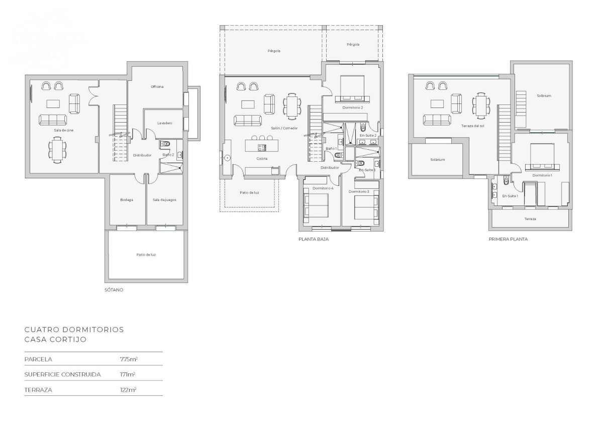 STUNNING NEW BUILD VILLAS IN DESERT SPRINGS RESORT A limited selection of luxurious four-bedroom fairway frontage Villas that afford stunning views across the championship Indiana course and mountain ranges beyond. Privacy is afforded via a gated front courtyard, private parking and perimeter fencing. An extensive roof top lounge and terraces, deep shady verandas with a built-in BBQ, a manicured private garden with swimming pool overlooking the golf course, ensure that the exterior presents a wealth of opportunity to enjoy the long lazy summer days and glorious star-filled evenings. Inside, contemporary design and natural light, showcasing an overall feel of space, are the outstanding characteristics of a sophisticated interior that offers a stylish home with modern appeal. Features include an internal reception area that opens into an extensive open plan living/dining room and kitchen with ‘level through’ floor, onto the covered verandas, private landscaped garden and swimming pool to offer a combined interior/ exterior living and dining space, designed to be used as one in the region’s specially privileged climate. Located on the first floor, the master bedroom with en-suite has direct access to the extensive roof top lounge and terrace. There are two further bedrooms with en-suite on the ground floor, one with direct access to the extensive veranda and swimming pool as well as a fourth bedroom with separate bathroom. Downstairs the vast lower ground floor presents a games room, cinema room, wine cellar, office, utility room and fifth bathroom. Luxurious finishes include attractively tiled bathrooms, an open plan kitchen with ‘Silestone’ worktops, with integrated appliances, ceramic hob and cooker hood. Double glazing, mirrored wardrobes to bedrooms with high quality ‘Roca’ or ‘Porcelnosa’ sanitary ware and fittings throughout. A mechanical ventilation system to lower, ground and first floor and photovoltaic panels connected to the hot water cylinder with individually controlled hot/cold air-conditioning units to the living room and bedrooms, cater fully for all temperature control requirements. USB ports in all rooms with high-speed internet connectivity.