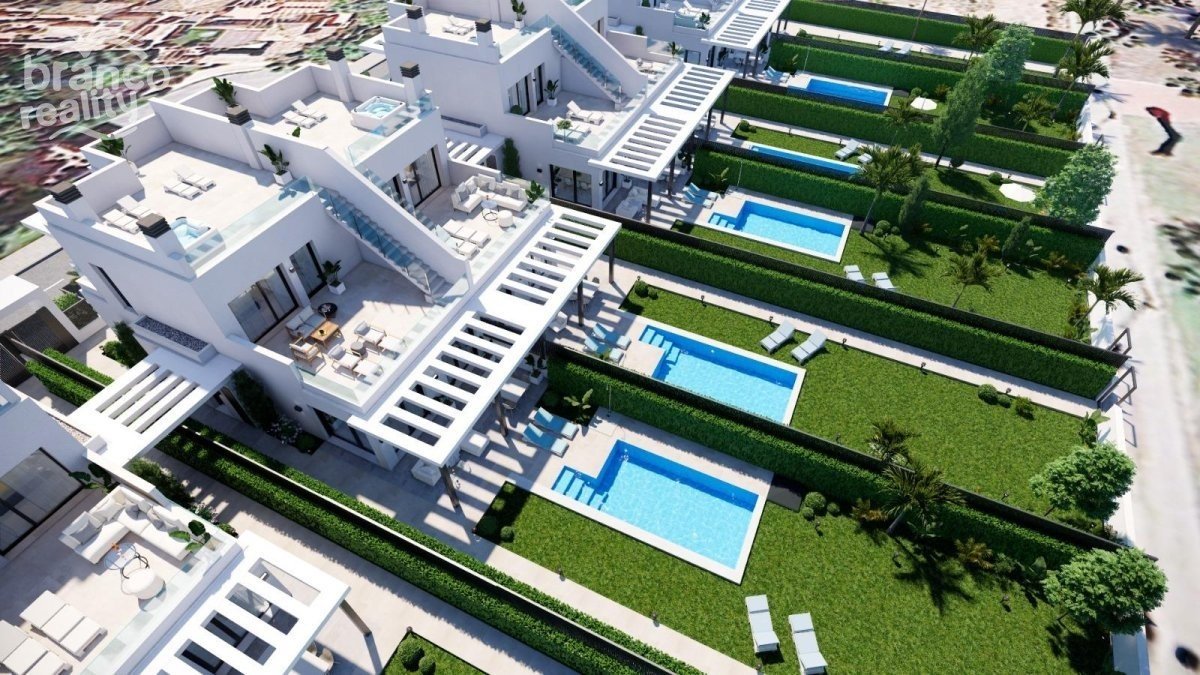 Luxury New Construction Villas on the Waterfront in Los Alcázares Discover the ultimate in Mediterranean living with this exclusive residential project, featuring nine contemporary villas located directly on the waterfront in the beautiful coastal town of Los Alcázares, Murcia. Situated in the sought-after Nueva Ribera area, these villas are designed for luxury, privacy, and convenience, with nearby access to golf courses, shopping centers, and transportation hubs. Each villa offers high-end finishes, breathtaking sea views, and a private pool, making them the ideal choice for those seeking a modern coastal retreat. Prime Location in Los Alcázares Nestled in Los Alcázares, a charming town on Spain's Costa Cálida, this residential project enjoys an enviable location with direct access to the waterfront promenade. This peaceful area combines the tranquility of seaside living with easy access to amenities. The vibrant town center of Los Alcázares is only 2 km away, while Murcia International Airport is just 35 km, making travel convenient. The renowned Roda Golf Club lies within 4 km, providing recreational options close to home, and the AP-7 highway offers quick access to nearby cities and attractions. Exclusive Villas with Premium Amenities The project includes nine villas in total: eight semi-detached and one standalone, each occupying plots of over 300 square meters. These spacious properties are crafted for elegance and comfort, featuring: Private Pool and Solarium: Each villa comes with a saltwater private pool and a rooftop solarium equipped with a jacuzzi, ambient LED lighting, and pre-installation for an outdoor kitchen—ideal for entertaining while enjoying views of the Mar Menor. Modern, Fully Equipped Kitchen: The kitchen features integrated appliances from Bosch, including an oven, microwave, induction cooktop, and extractor hood. The sleek design incorporates a Silestone or porcelain peninsula and countertops. Sophisticated Climate Control: Enjoy year-round comfort with ducted climate control on each floor, using high-performance units from Mitsubishi or Daikin. Stylish Bathrooms: High-end bathrooms include suspended vanity units, resin shower trays, and built-in shower screens. Energy-Efficient Design: Each villa features advanced insulation, Guardian Sun acoustic double-glazed windows, and an Aerothermal water heating system for optimal energy efficiency. Smart Home Features: Electric shutters, LED outdoor lighting, and pre-installation for an electric vehicle charging station add modern convenience. Secure and Private Community Set within a private, gated community with 24-hour security, these villas offer direct access to the beach promenade from each garden, ensuring both privacy and connectivity. Experience Los Alcázares Coastal Living – Schedule a Visit Today! Embrace the luxury of coastal living in Los Alcázares. With proximity to Roda Golf and shopping centers within 5 km, these villas offer an unmatched lifestyle. Contact us today to schedule a viewing and secure your dream waterfront property.