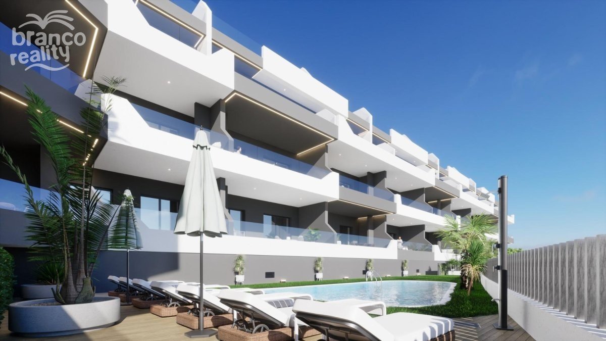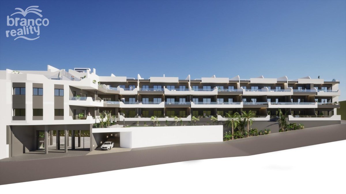 NEW BUILD BUILD RESIDENTIAL COMPLEX IN BENIJOFAR New Build residential complex in the quiet area of Benijofar. Residential made up of 35 apartments and penthouses with 2, 3 and 4 bedrooms and 2 bathrooms, open plan kitchen with the lounge area, fitted wardrobes, terraces. The penthouses also have a large private solarium where you can enjoy the beautiful summer sunsets. New Build residential complex has a large green area with a swimming pool. An options underground parking space and storage at an extra cost. Benijofar it is a lovely village with a charming church and all services such as supermarkets, pharmacies, banks, restaurants and natural park located very close to the villas. There are several golf courses close by as well as water parks in nearby Rojales and Torrevieja. The best beaches of Guardamar are only 10 minutes away by car with more than 11 km of white sand dunes and crystal clear waters. Benijófar located a few minutes from the N-332 and AP-7. Just 30 minutes from Alicante airport, 10 minutes from the beaches of Guardamar and Torrevieja.