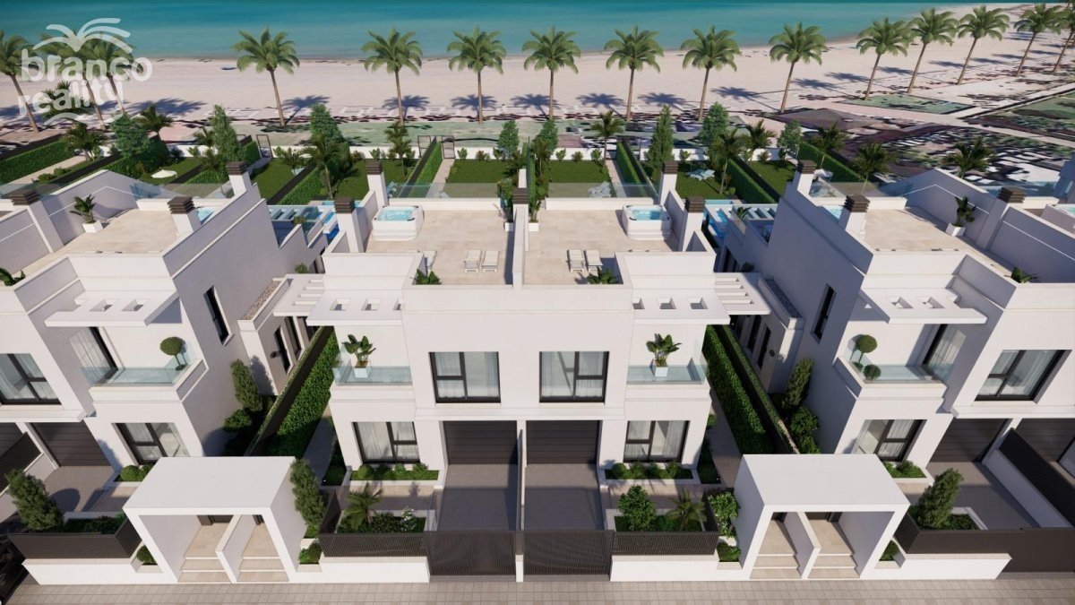 Luxury New Construction Villas on the Waterfront in Los Alcázares Discover the ultimate in Mediterranean living with this exclusive residential project, featuring nine contemporary villas located directly on the waterfront in the beautiful coastal town of Los Alcázares, Murcia. Situated in the sought-after Nueva Ribera area, these villas are designed for luxury, privacy, and convenience, with nearby access to golf courses, shopping centers, and transportation hubs. Each villa offers high-end finishes, breathtaking sea views, and a private pool, making them the ideal choice for those seeking a modern coastal retreat. Prime Location in Los Alcázares Nestled in Los Alcázares, a charming town on Spain's Costa Cálida, this residential project enjoys an enviable location with direct access to the waterfront promenade. This peaceful area combines the tranquility of seaside living with easy access to amenities. The vibrant town center of Los Alcázares is only 2 km away, while Murcia International Airport is just 35 km, making travel convenient. The renowned Roda Golf Club lies within 4 km, providing recreational options close to home, and the AP-7 highway offers quick access to nearby cities and attractions. Exclusive Villas with Premium Amenities The project includes nine villas in total: eight semi-detached and one standalone, each occupying plots of over 300 square meters. These spacious properties are crafted for elegance and comfort, featuring: Private Pool and Solarium: Each villa comes with a saltwater private pool and a rooftop solarium equipped with a jacuzzi, ambient LED lighting, and pre-installation for an outdoor kitchen—ideal for entertaining while enjoying views of the Mar Menor. Modern, Fully Equipped Kitchen: The kitchen features integrated appliances from Bosch, including an oven, microwave, induction cooktop, and extractor hood. The sleek design incorporates a Silestone or porcelain peninsula and countertops. Sophisticated Climate Control: Enjoy year-round comfort with ducted climate control on each floor, using high-performance units from Mitsubishi or Daikin. Stylish Bathrooms: High-end bathrooms include suspended vanity units, resin shower trays, and built-in shower screens. Energy-Efficient Design: Each villa features advanced insulation, Guardian Sun acoustic double-glazed windows, and an Aerothermal water heating system for optimal energy efficiency. Smart Home Features: Electric shutters, LED outdoor lighting, and pre-installation for an electric vehicle charging station add modern convenience. Secure and Private Community Set within a private, gated community with 24-hour security, these villas offer direct access to the beach promenade from each garden, ensuring both privacy and connectivity. Experience Los Alcázares Coastal Living – Schedule a Visit Today! Embrace the luxury of coastal living in Los Alcázares. With proximity to Roda Golf and shopping centers within 5 km, these villas offer an unmatched lifestyle. Contact us today to schedule a viewing and secure your dream waterfront property.