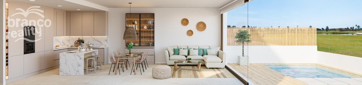New Build Golf Front Line Villas in Los Alcázares, Costa Cálida Exclusive Living Near the Beach and Golf This new residential development in Los Alcázares offers a unique opportunity to enjoy a modern lifestyle in one of the most desirable areas of the Costa Cálida. Located just 1.2 km from the beach and directly on the frontline of the prestigious La Serena Golf Course, the project blends coastal living with the peace of a golf resort. The charming town center of Los Alcázares is within walking distance, providing easy access to shops, restaurants, cafés, and essential services. Prime Location with Excellent Connections Los Alcázares is an ideal location for those looking to invest in a new property by the Mediterranean. The area is only 25 minutes from Murcia Airport and approximately 55 minutes from Alicante Airport. Thanks to excellent motorway connections, residents can quickly reach nearby cities such as Cartagena (20 km), Murcia (40 km), and Alicante (80 km), as well as other beautiful beaches along both the Costa Cálida and Costa Blanca. Apartments and Villas Designed for Comfort The development includes 13 contemporary apartments with 2, 3, or 4 bedrooms and 4 exclusive golf front line one-level villas with 3 bedrooms. Each property combines modern design with high-quality finishes and functional layouts. Villas offer private plots with gardens and pools, and the option of a private solarium for an extra touch of luxury. All homes enjoy impressive views of the golf course and the Mar Menor. High-Quality Features Every home has been designed with style and comfort in mind. Key features include: Fully equipped bathrooms with furniture and shower screens Pre-installation of ducted air conditioning Motorized shutters in bedrooms Private swimming pool On-plot parking Golf and Coastal Lifestyle Situated on the La Serena Golf Course, renowned for its lush landscaping and water hazards on 16 of its 18 holes, this development is a paradise for golf lovers. At the same time, residents can enjoy direct pedestrian access to Los Alcázares town center and the warm waters of the Mar Menor, the largest saltwater lagoon in Europe. With its calm waves, fine sand, and ideal conditions for sailing, swimming, and water sports, the area is perfect for both relaxation and adventure. Your Mediterranean Home Awaits Whether you are a golf enthusiast, a water sports lover, or simply seeking a peaceful coastal retreat, these new build villas in Los Alcázares offer the perfect balance of luxury, nature, and lifestyle. Contact us today to arrange a visit and secure your new home on the Costa Cálida.