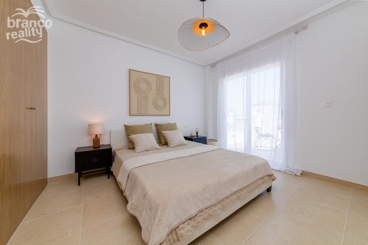 NEW BUILD RESIDENTIAL IN SAN FULGENCIO Residential complex of independent and semi-detached villas in San Fulgencio. The houses consist of 3 bedrooms, 3 bathrooms, living room and separate kitchen, 2 terraces on the ground floor, one terrace on the 2nd floor and a solarium on the roof. Each property has private garden and parking space. There is a large communal swimming pool. San Fulgencio is a comfortable and convenient area, known for its excellent infrastructure. In the immediate vicinity of cafes, restaurants, bars, pharmacies, 3 large supermarkets: Lidl, Aldi, Mercadona. Residential complex is located 10 minutes by car from the beach and also 10 minutes from the most famous in this area leisure and family center ¨La Marina Resort¨ with a water park, camping, gym, spa, restaurants, shops and cafes. Residential complex has a unique location – 30 minutes by car from the airport, 40 minutes from the city of Alicante and 20 minutes from the city of Torrevieja.