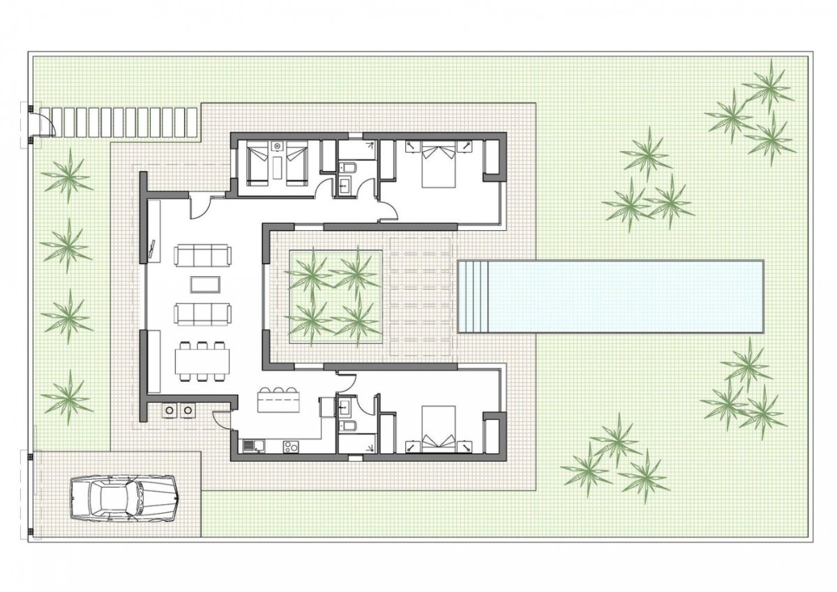 NEW BUILD MODERN VILLAS IN BENIJOFAR New Build villas located in Benijófar, a privileged area of the Costa Blanca, equipped with all services, 20 minutes from Alicante Airport, near the beautiful beaches of Guardamar and several golf courses. It is a modern style villas consisting of spacious living-dining room with an open-plan kitchen, 3 bedrooms( one of them en-suite) and 2 bathrooms. It also has a private plot with terrace, parking area, private pool, Mediterranean-style garden with great views. The house also has hot and cold air conditioning, video intercom and security door. Benijofar it is a lovely village with a charming church and all services such as supermarkets, pharmacies, banks, restaurants and natural park located very close to the villas. There are several golf courses close by as well as water parks in nearby Rojales and Torrevieja. Benijófar located a few minutes from the N-332 and AP-7. Just 30 minutes from Alicante airport, 10 minutes from the beaches of Guardamar and Torrevieja.
