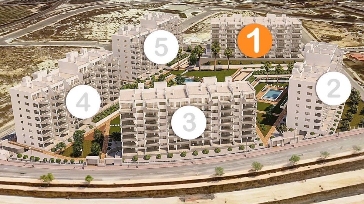 New Residential Development in San Miguel de Salinas Exclusive Apartments in a Unique Natural Environment Discover this new development in San Miguel de Salinas, an exclusive residential complex made up of 5 blocks of flats with spacious communal areas, designed to offer comfort and quality of life. This gated complex has a spectacular communal garden of almost 10,000 m², distributed over three levels and integrated with three communal swimming pools, surrounded by natural lawns and a carefully selected range of trees and plants. The homes have been designed to take advantage of natural light and unobstructed views, offering an ideal option both as a second home and for year-round living. Types of homes available In this exclusive residential complex, you can choose between: Ground floors with large private gardens. Intermediate floors with terraces of more than 20 m². Penthouses with terraces and private rooftop solarium. Currently available is Block 1, comprising 42 homes with excellent value for money. First Class Quality and Equipment All homes come fully equipped, including: Electrical appliances included in the kitchen. Fully equipped bathrooms, with furniture, screens and LED lighting system. Complete installation of ducted air conditioning. Parking space and storage room included in the price. We also have show flats in another similar project, so that you can see the quality of the finishes before delivery. Strategic Location on the Costa Blanca San Miguel de Salinas is a charming town in the Vega Baja del Segura region, just a few minutes from the best beaches and golf courses on the Costa Blanca. Surrounded by a privileged natural environment, the municipality offers a peaceful atmosphere and all essential services such as supermarkets, restaurants, health centres and schools. Distances to the Main Points of Interest Las Colinas and Campoamor Golf Courses - 7 km. Beaches of Orihuela Costa and Torrevieja - 10 km. Zenia Boulevard Shopping Centre - 9 km. Alicante Airport - 50 km. Murcia-Corvera Airport - 55 km. Your New Home Awaits in San Miguel de Salinas Whether you are looking for an investment on the Costa Blanca or a home to enjoy all year round, this development offers a perfect combination of luxury, comfort and unbeatable location. Contact us today for more information and to arrange a viewing.