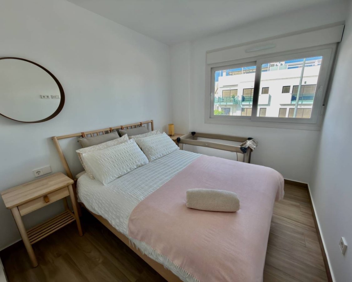 Fabulous penthouse apartment located at Vistabella Golf, built in 2022, offering modern and stylish living in a sought-after community. This spacious three-bedroom, two-bathroom property features a contemporary open-plan design with high-quality finishes and plenty of natural light. The apartment is equipped with a fully fitted kitchen, built-in wardrobes in all bedrooms, and is furnished to a high standard with furniture negotiable. Enjoy the outdoor lifestyle with a private terrace and a large solarium, perfect for relaxing or entertaining while taking in lovely views of the surrounding communal gardens and urbanisation. Key features include air conditioning, ceiling fans, double glazing, security grills, fibre optic internet, and an outdoor shower. The property is located close to amenities, shops, and golf courses, just 10 minutes from the beach and 35 minutes from the airport. Residents benefit from access to a communal pool, gardens, and street parking. The apartment boasts a South orientation, ensuring plenty of sunshine and warmth. Vistabella is more than just a golf course; it is a secure, well-established resort with a vibrant, international community. Everything you need for daily life and leisure is just a few meters walk away: •Supermarket & Pharmacy •Choice of restaurants and bars •New clubhouse (under construction) •Paddle tennis courts & English bowling green •18-hole championship golf course and golf academy It’s the perfect setting, offering the tranquility of a countryside location with immediate access to a wealth of amenities and a lively social scene. Early viewing is strongly recommended.