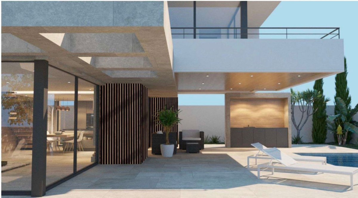 This stunning modern-style villa offers a total built area of 220 m², including 160 m² of refined living space, and is ideally positioned opposite a beautiful coniferous park in a peaceful and prestigious setting. Currently under construction with premium-quality materials, the property is designed to combine contemporary architecture, comfort, and functionality. The villa features 3 spacious bedrooms and 4 stylish bathrooms, along with a bright open-plan kitchen and living area enhanced by large south-facing panoramic windows that flood the interior with natural light. A marble-finished fireplace adds warmth and sophistication, while private balconies from the second-floor bedrooms provide serene views of the surrounding greenery. An optional rooftop solarium offers breathtaking vistas of the Mediterranean Sea and Lake Solinas, creating the perfect space for relaxation or entertaining. Scheduled for completion in March 2026, the home will be delivered fully equipped with built-in furniture and high-end appliances. Outdoor amenities include a 9 × 4 m swimming pool, a barbecue area, and a generous 531 m² plot with landscaped green areas and mature palm trees. The villa is future-ready, with pre-installation for solar panels, preparation for an electric vehicle charging station, and private parking for up to three cars. Located in a quiet and exclusive area of Ciudad Quesada, directly facing a pine forest, the property enjoys close proximity to supermarkets, schools, two renowned golf courses, and a business center, while the sea is just 5 km away.