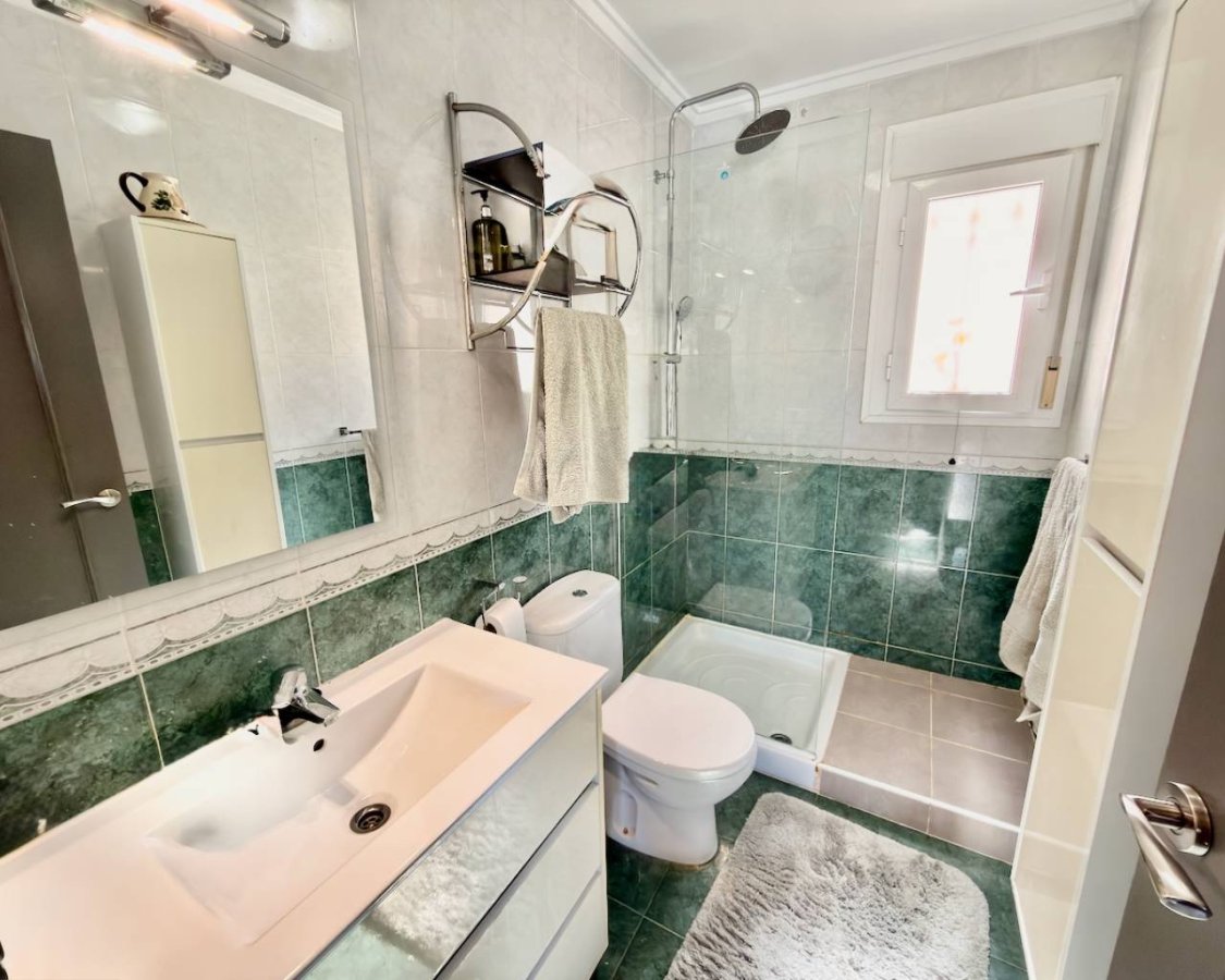 This beautifully presented 2-bedroom, 2-bathroom villa, built in 2004, is offered in excellent condition with furniture negotiable. The property is thoughtfully designed across 80m² of built space on a 200m² fully tiled plot, making it ideal for both permanent living and holiday use. The villa features a bright, functional layout with a fully equipped kitchen, a utility room, and spacious living areas that open onto a private, glazed terrace overlooking the garden. Both bedrooms include built-in wardrobes: one on the ground floor and the master on the top floor, with its owner's roof terrace. The home benefits from air conditioning and ceiling fans throughout for year-round comfort. Outdoor living is well catered for with private gardens, exterior lighting, and garden views, while residents also enjoy access to a well-maintained communal swimming pool. Additional features include off-road parking, white goods, and a north-west facing orientation, providing pleasant afternoon and evening sun. Conveniently located, the property is just: 5 minutes from amenities and golf courses15 minutes from the beach30 minutes from the airport This is a fantastic opportunity to own a low-maintenance villa in a desirable location, perfect as a permanent residence, holiday home, or investment property.
