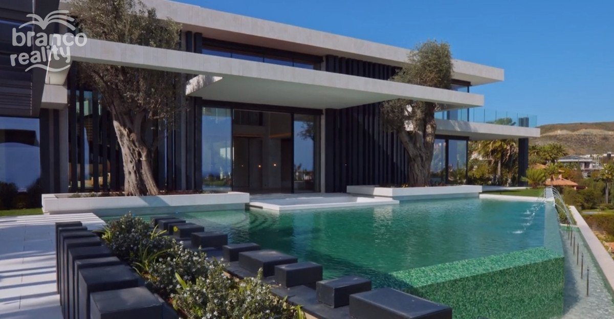 EXTRAORDINARY LUXURY VILLA BUILT IN LOS FLAMINGOS GOLF Welcome to Otto, the most extraordinary luxury villa ever built in Los Flamingos Golf. A luxurious, cutting-edge frontline golf mansion designed by renowned Tobal architect. Otto is set on a large and elevated frontline golf plot, enjoying breathtaking views to the Mediterranean Sea and the greens of Los Flamingos Golf. The villa has been finished to the highest quality standards, with flawless architectural features throughout. Otto welcomes you into an impressive entrance area, with magnificent water features. The entrance consists of a stunning entrance hall, with high ceilings and direct access to the open-plan living spaces. Expansive flooru0002to-ceiling windows open up to the magnificent views to the coastline. The masterpiece of this luxurious home is the impressive staircase, connecting all levels in the most luxurious way. The living room is generous and very bright, boasting a high quality wooden floor and a modern gas fireplace. The open-plan custom Bulthaup kitchen offers a sleek design and makes every chef's dream come true, with high quality Gaggenau appliances and an extraordinary attention to details. Otto bedrooms are truly breathtaking, surrounded by an idyllic setting with magnificent views, all bedrooms are distributed over the three levels with the master bedroom and a generous guest bedroom on the upper level. The lower level of Otto boasts a luxurious state-ofu0002the-art SPA, with indoor pool with salt-water treatment, sauna and hamam. Otto is the perfect luxury home to enjoy outdoor living, with a cutting-edge infinity pool with water features, overlooking the Mediterranean Sea, vast terraces around the pool area, outdoor fireplace, and a wonderful metallic pergola with bar and BBQ. This is truly the most extraordinary estate currently on the market!