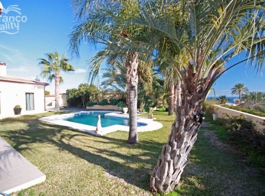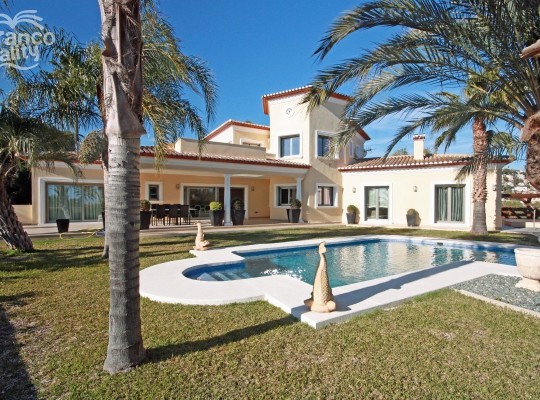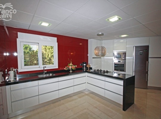 Magnificent, spacious villa for sale in Buenavista, Benissa Costa. This luxurious, four bedroom, four bathroom villa has its accommodation on three levels, situated in an elevated, tranquil location with superb sea views.ACCOMMODATION: Covered entrance porch, hallway, spacious lounge, separate dining room, luxury fully-equipped kitchen, guest shower room, three double bedrooms, two en-suite. UPPER LEVEL: Master suite with large double bedroom with walk-in wardrobe and en-suite bathroom. LOWER LEVEL: Two storage rooms, utilities room, laundry room. OUTSIDE: Large freeform pool, landscaped gardens & terrace, balcony terraces, double carport, driveway, electric gates.FULL DETAILSDetached villa for sale in Benissa Costa, Buenavista. This superb villa is situated in an elevated, tranquil location, enjoying fabulous views across the valley to the sea. Remote gates open onto a broad driveway with double carport and the entrance to this imposing villa. A few steps lead up to a covered porch and the main entrance which opens into a welcoming hallway. From here is the spacious, deluxe kitchen, fully-equipped with high quality, integrated Bosch appliances, black silestone worktops, hi-gloss white wall and base units, burgundy wall tiles and a gas hob with a feature chandelier-style extractor unit above. Adjacent to the kitchen is the separate dining room and the particularly spacious and bright lounge, with patio doors leading out to a covered naya and the private pool, which is surrounded by beautifully landscaped gardens. A door from the lounge leads into double bedroom 2, with built-in wall-to-wall wardrobes and en-suite shower room. Left from the entrance hallway is a large shower room with walk-in shower; double bedroom 3; double bedroom 4 with en-suite bathroom with twin basins set into silestone tops; and an imposing marble staircase leading up to the master suite with beautiful large double bedroom, fully-fitted walk-in wardrobe and particularly large en-suite bathroom with twin basins, double-sized walk-in shower, and contemporary free-standing bath. From here, there are fabulous views to the sea. Also from the master bedroom, there are patio doors which open onto a large balcony terrace which enjoys amazing views to the sea and Calpe Ifach Rock. On the lower level there are two storage rooms, a large laundry room and additional utilities room. Outside, is the private freeform pool, surrounded by incredible landscaped gardens with palms and fabulous sea views from Morairas Cap dOr around to Calpe Ifach Rock. This is an exceptional property finished to the highest standards, including under-floor heating, marble floors, hot & cold ducted air-conditioning, integrated audio system throughout, Venetian polish plastered walls, highest quality kitchen appliances, bi-colour double-glazed windows (aluminium outside and white wood inside).SPECIFICATION INCLUDES: Under-Floor Heating, H&C Ducted Air-Conditioning, Integrated Audio System Throughout, Bi-Colour Double-Glazed Windows (aluminium outside, white wood inside), Venetian Polish Plastered Walls, Remote Entry-Phone System, Laundry Room, Utilities Room, Two Storage Rooms, Solar Panels, Private Freeform Pool, Landscaped Gardens, Electric Gates, Driveway, Double Carport.