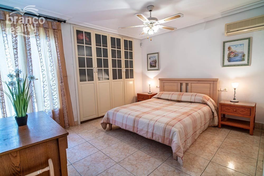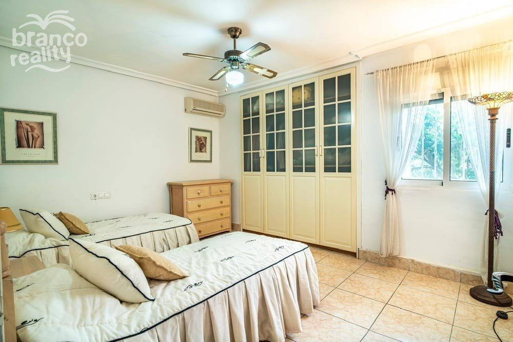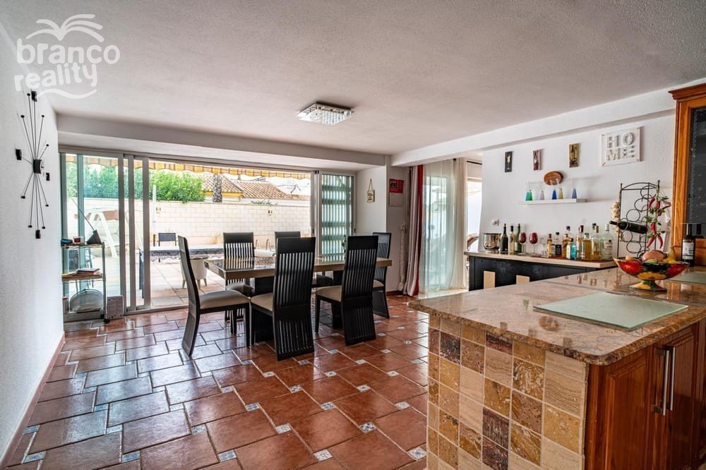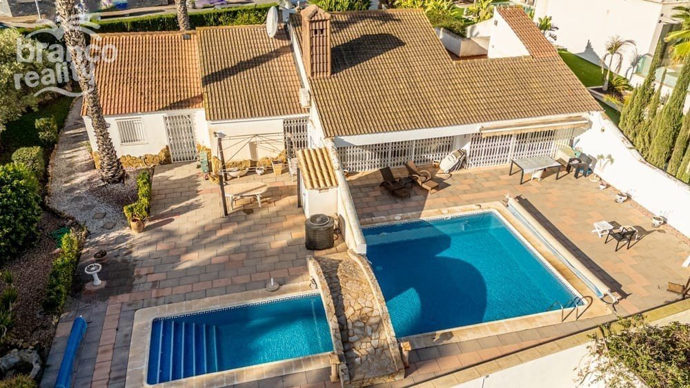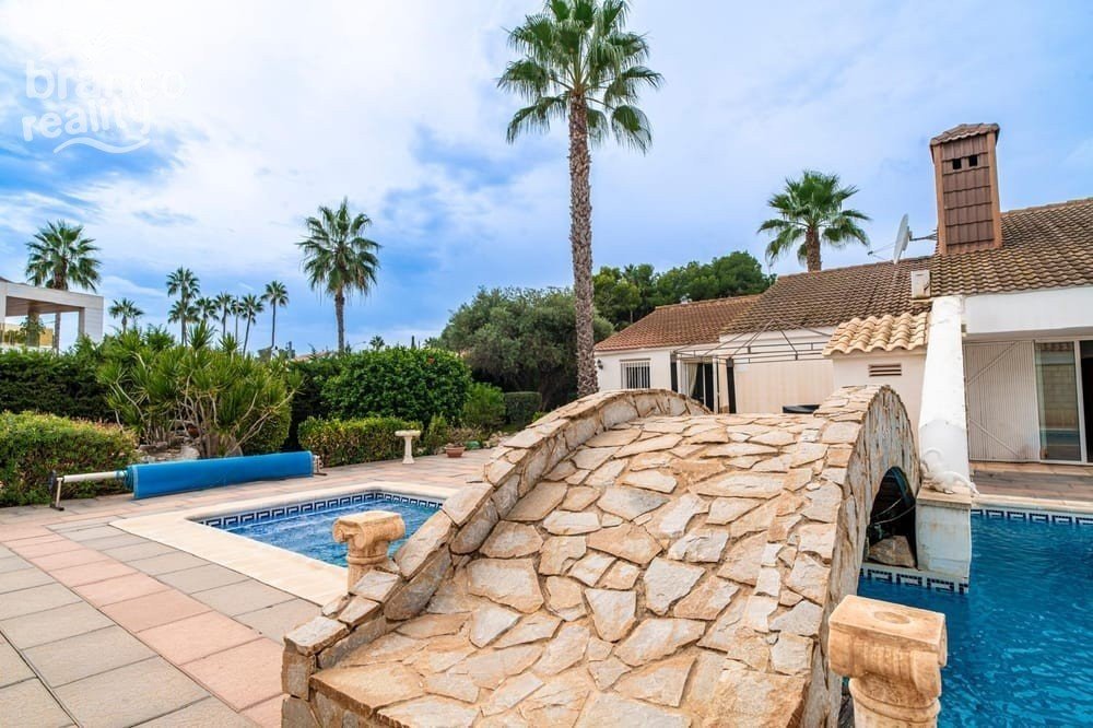 Samostatně stojící vila na Villamartinu Vila ve stylu bungalovu na pozemku o rozloze 1 185 m2 s venkovním jídelním koutem a velkým soukromým bazénem Vila má zastavěnou plochu 245 m2, která se rozkládá na velkém obývacím pokoji s krbem a přímým vstupem do zahrady Plně vybavená kuchyň se samostatnou jídelnou 4 dvoulůžkové ložnice a 4 koupelny Nemovitost nabízí také garáž s přímým vstupem dovnitř nemovitosti Výhodná lokalita ve Villamartinu Cena: 850 000 €