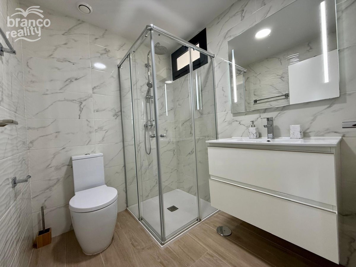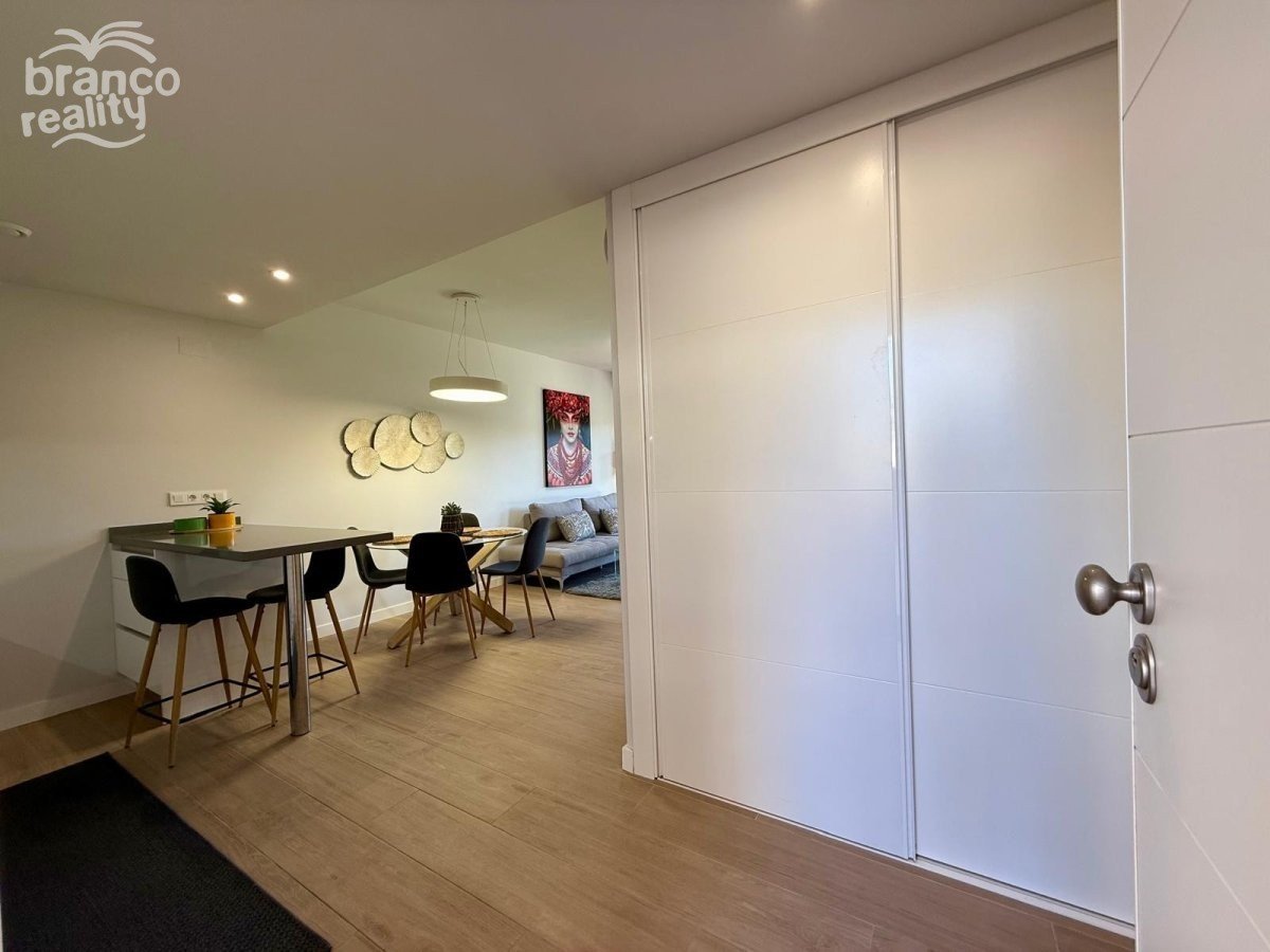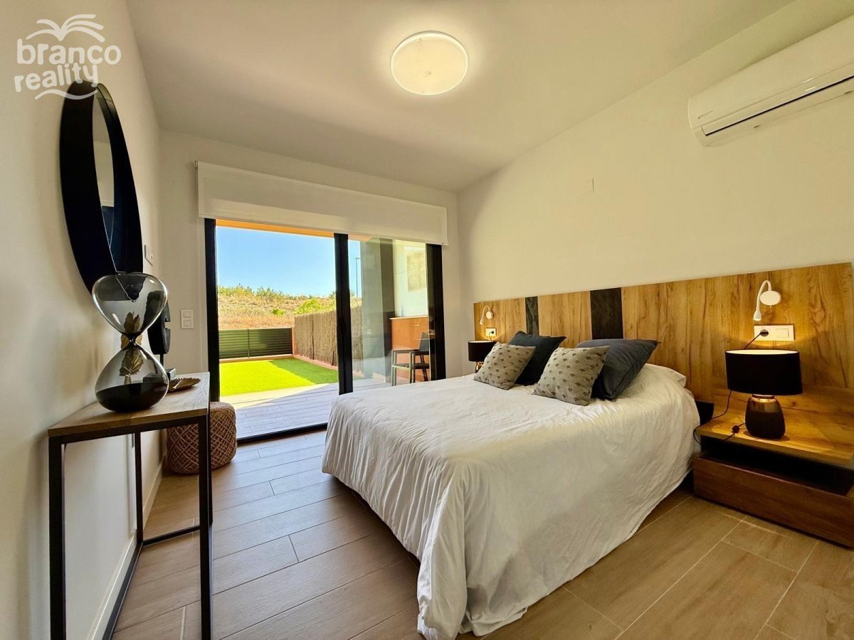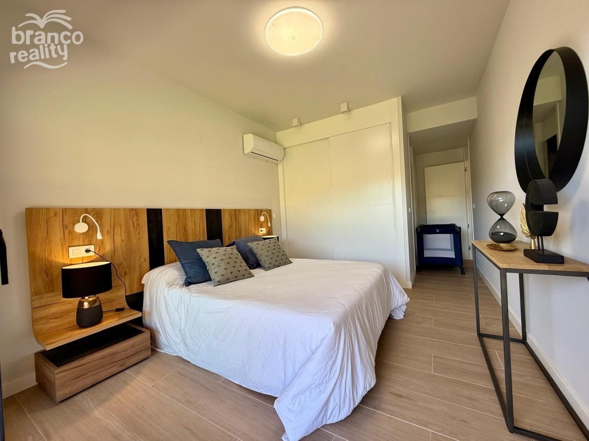 Moderní byt v přízemí s velkou zahradou orientovanou na východ, která je sluncem svítit až do časného odpoledne. Na západní straně pozemku se nachází další soukromá terasa s dlažbou. Nemovitost má prostorný obývací pokoj, jídelnu a americkou kuchyň, 2 dvoulůžkové ložnice a 2 koupelny. Nemovitost se prodává s nábytkem (podléhá inventáři), klimatizací, podzemním parkováním a přístupem k velkému společnému bazénu. Cena: 275 000 €. Poplatky za komunitu: 1 000 € ročně.