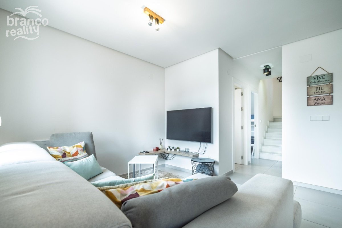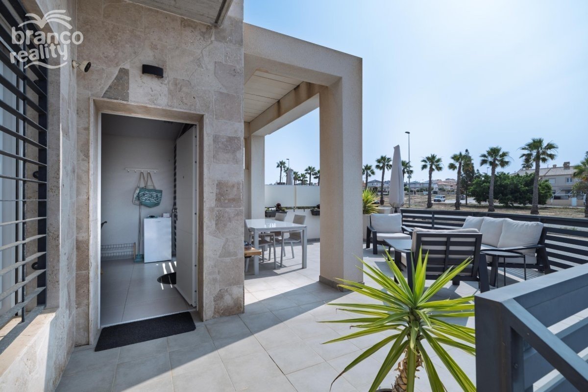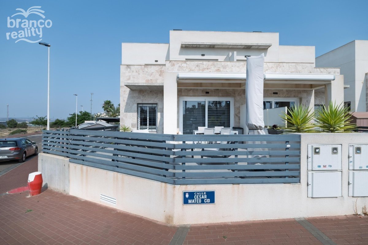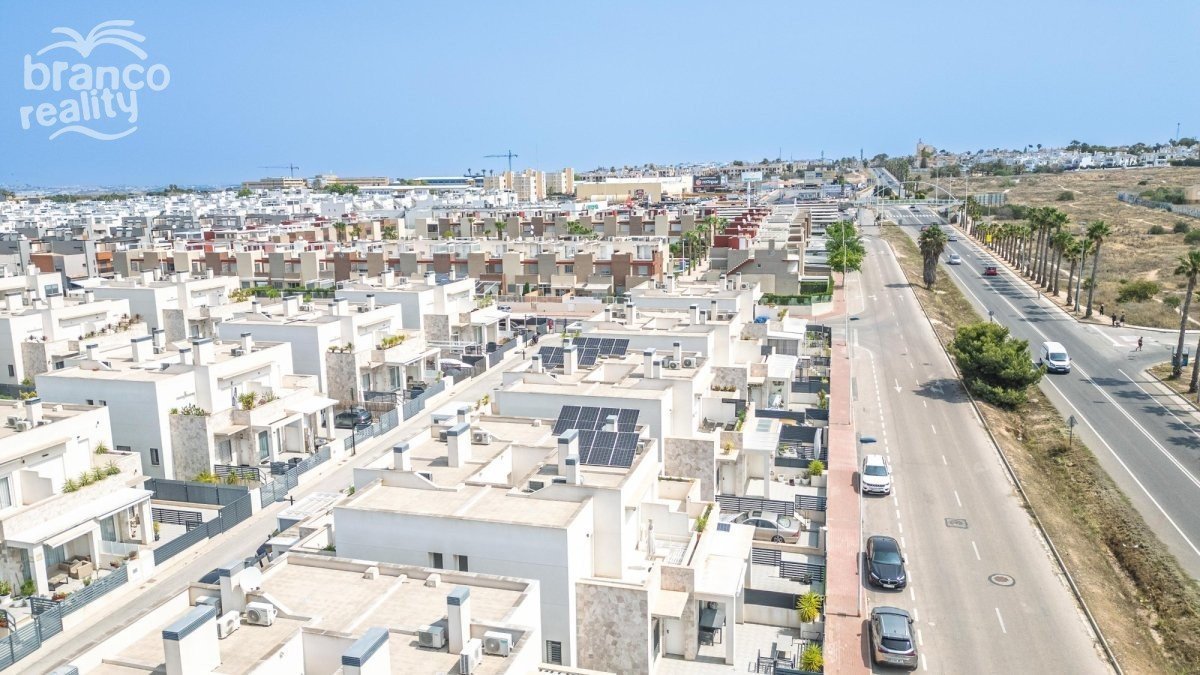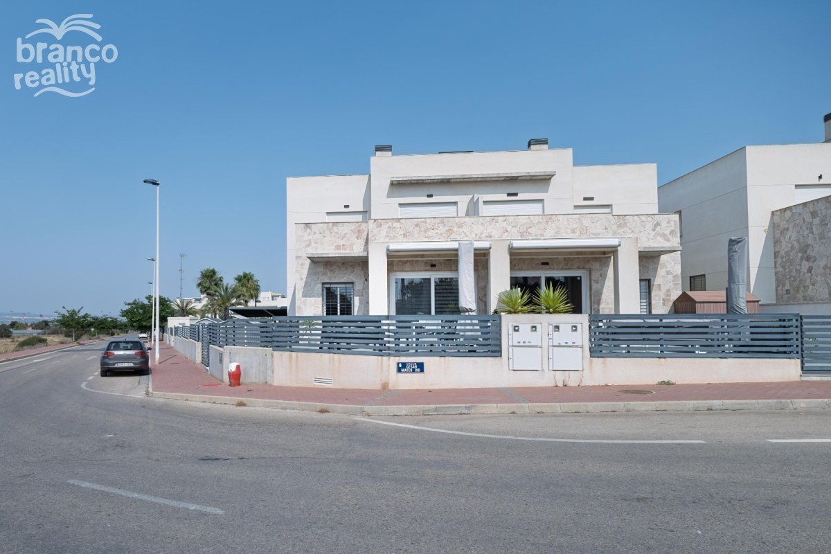 Moderní rohový dům v Aguas Nuevas, Torrevieja – ihned k nastěhování! Představujeme vám tento fantastický dům postavený v roce 2021, který se nachází v jedné z nejvyhledávanějších oblastí Torrevieja: Aguas Nuevas. Díky rohovému pozemku a orientaci na východ se dům těší dostatku přirozeného světla po celý den. V přízemí najdete prostorný a světlý obývací pokoj s jídelnou a otevřenou kuchyní, ideální pro rodinný život nebo zábavu. K dispozici je také jedna ložnice a koupelna, ideální pro hosty nebo domácí kancelář. V horním patře jsou dvě ložnice, každá s vlastní koupelnou, což poskytuje soukromí a pohodlí všem obyvatelům. Nemovitost je součástí rezidenčního komplexu se společným bazénem a nachází se ve výhodné lokalitě v blízkosti veškeré občanské vybavenosti: supermarkety, autobusová zastávka, restaurace a další – vše jen pár kroků odtud. Navíc je pláž vzdálena necelé 2 km od vašeho prahu! Ideální volba pro celoroční bydlení nebo jako investice k rekreačnímu pronájmu. Přijďte a navštivte nás – zamilujete si lokalitu a design!