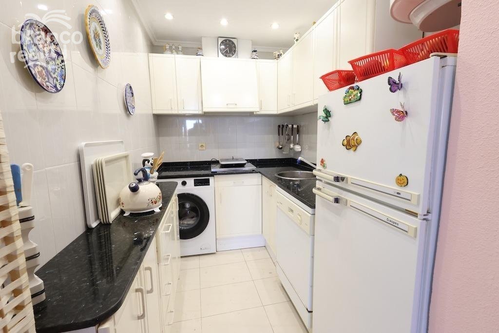 Pouhých 300 metrů od pláže se nachází tento okouzlující rohový apartmán v prestižním rezidenčním komplexu Lomas Playa IV a nabízí ničím nerušený výhled na moře. Dům o rozloze 50 m² se skládá z prostorné ložnice, světlého obývacího pokoje s jídelnou, samostatné kuchyně a terasy s nádherným panoramatickým výhledem. Prodává se kompletně zařízený, vybavený klimatizací a zahrnuje dvě parkovací místa: jedno uzavřené a jedno otevřené, což je v této oblasti neobvyklé. Rezidenční komplex má krásný společný bazén a je obklopen veškerou občanskou vybaveností, takže je ideální jak pro rekreační bydlení, tak pro investici.
