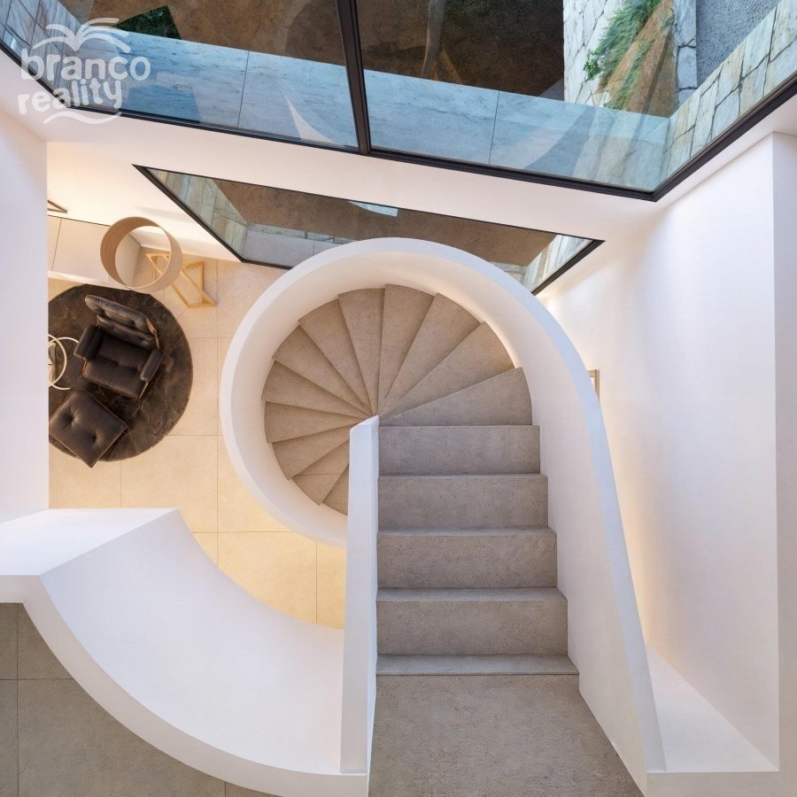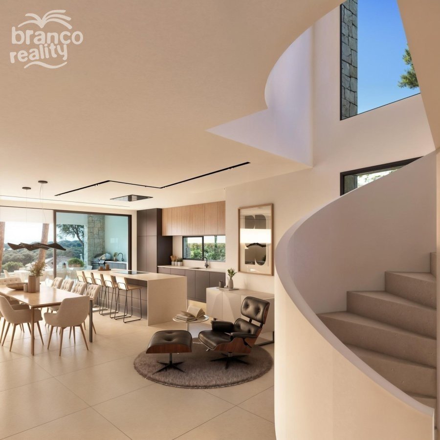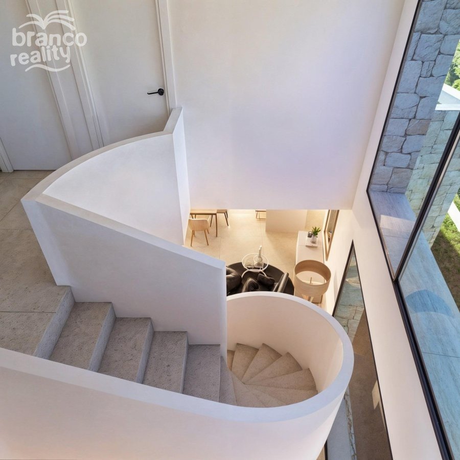 Luxusní novostavba vily s výhledem na moře v Moraiře, prvotřídní lokalita v blízkosti pláže a centra města Tato luxusní vila v Moraiře se nachází na ideálním místě, pouhých 1,8 km od pláže a pulzujícího centra města, a nabízí ideální rovnováhu mezi soukromím a pohodlím. Moraira, okouzlující pobřežní město na pobřeží Costa Blanca, je známé svými jemnými písečnými plážemi, křišťálově čistou vodou a středomořským životním stylem. Město se pyšní širokým výběrem restaurací, barů, supermarketů a živého přístavu. Mezinárodní letiště Alicante je vzdálené přibližně 90 km (1 hodina 15 minut) po dálnici A7, zatímco letiště ve Valencii leží v podobné vzdálenosti na sever, což usnadňuje a zpříjemňuje přístup. Moderní design s prostornými interiéry Tato vila, postavená na velkorysém pozemku o rozloze 912 m², má celkovou zastavěnou plochu 350 m² ve dvou podlažích. Dům zahrnuje 4 ložnice s vlastními koupelnami a toaletu pro hosty, vše zařízené vysoce kvalitními materiály. V přízemí se nachází světlý obývací a jídelní prostor s otevřeným prostorem, který je plynule propojen s moderní kuchyní s centrálním ostrůvkem. Odtud se velké posuvné dveře otevírají přímo na terasu, do letní kuchyně a k soukromému bazénu. Toto patro doplňuje ložnice s vlastní koupelnou, toaleta pro hosty, prádelna a všestranná víceúčelová místnost. Elegantní horní patro s výhledem na moře Designové schodiště vede do horního patra, kde se nacházejí další tři ložnice s vlastní koupelnou, prostorná vstupní hala a soukromá terasa s nádherným výhledem na moře. Nemovitost nabízí také garáž, soukromé parkoviště, podlahové vytápění, klimatizaci, dvojité zasklení a zesílené bezpečnostní dveře, které zajišťují maximální pohodlí a klid. Venkovní středomořská oáza Exteriér byl navržen jako soukromé útočiště a kombinuje upravené zahrady, kryté i otevřené terasy, soukromý bazén s venkovní sprchou a prostor pro grilování, který je ideální pro zábavu. Jihovýchodní orientace zaručuje dostatek přirozeného světla po celý den, díky čemuž je každý kout vily světlý a příjemný. Životní styl v Moraiře Moraira je proslulá svou uvolněnou a zároveň kosmopolitní atmosférou. Rodiny si zamilují její bezpečnou písečnou pláž, zatímco milovníci přírody si mohou užít úchvatné procházky po pobřeží s výhledem na Peñón de Ifach v Calpe, který se nachází pouhých 12 km daleko. Milovníci golfu najdou také vynikající golfová hřiště v okruhu 10 až 15 km. Vaše vysněná vila čeká Zažijte luxusní bydlení v Moraiře s touto exkluzivní vilou. Kontaktujte nás ještě dnes a domluvte si prohlídku a udělejte si z tohoto středomořského ráje svůj nový domov.