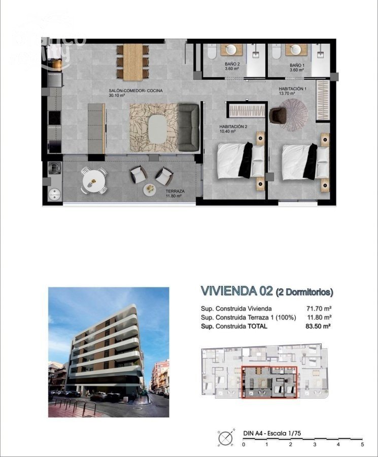 Moderní novostavby apartmánů v Santa Pole pouhých 500 metrů od pláže Prvotřídní lokalita v srdci Santa Poly Tato exkluzivní nová výstavba se nachází v pulzujícím centru Santa Poly, jednoho z nejkrásnějších pobřežních měst v provincii Alicante. Pouhých 500 metrů od pláže a přístavu si obyvatelé mohou užívat středomořský životní styl se vším na dosah ruky. Město Alicante je vzdálené pouhých 20 km a mezinárodní letiště Alicante-Elche je vzdálené pouhých 15 km, což poskytuje vynikající spojení. Moderní apartmány navržené pro pohodlí Budova se skládá z 15 moderních domů se 2 ložnicemi a 2 koupelnami, stejně jako volitelných jednotek s 1 nebo 3 ložnicemi a volitelnými úložnými prostory pro různé potřeby. Každý apartmán je navržen se světlými a prostornými interiéry s otevřeným obývacím a jídelním prostorem propojeným se zařízenou kuchyní. Velké posuvné dveře vedou na soukromé terasy, ideální pro užívání si mírného klimatu Costa Blanca. Prostorné hlavní ložnice a prémiové vybavení Hlavní ložnice měří až 20 m² a zahrnují vlastní koupelny, přičemž některá uspořádání nabízejí velkorysé šatny. Penthousy se pyšní rozlehlými solárii vybavenými grilem, přípravou pro vířivku, venkovními sprchami a přípojkami na televizi a elektřinu, což z nich činí ideální místo pro venkovní zábavu po celý rok. Užijte si středomořský životní styl Santa Pola je proslulá svou přírodní krásou a nekonečnými možnostmi trávení volného času. Město nabízí nedotčené pláže a zátoky ideální pro opalování, šnorchlování a vodní sporty. Pouhých 20 minut jízdy lodí leží ostrov Tabarca, známý svou křišťálově čistou vodou, mořskou rezervací a středomořskou gastronomií. Pro milovníky přírody nabízí přírodní park Las Salinas de Santa Pola nádherné turistické stezky a jedinečné zážitky z pozorování ptáků. Dokonalé spojení pro vaše pohodlí Díky své strategické poloze nabízí tento komplex snadný přístup k základním službám, nákupním centrům a sportovním zařízením. Milovníci golfu se mohou dostat na špičková hřiště, jako je El Plantío Golf, která jsou vzdálena necelých 25 km. Město Alicante s jeho kulturními a gastronomickými atrakcemi je vzdálené pouhých 30 minut jízdy autem. Ideální domov nebo investiční příležitost Ať už hledáte trvalé bydlení, rekreační dům nebo investici k pronájmu, tyto novostavby apartmánů v Santa Pole kombinují moderní design, pohodlí a bezkonkurenční polohu. Kontaktujte nás ještě dnes a rezervujte si svůj apartmán a začněte si užívat to nejlepší ze Santa Poly a Costa Blancy.
