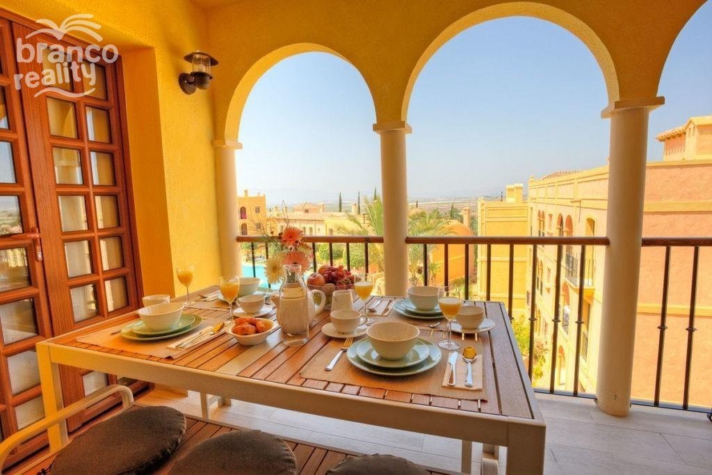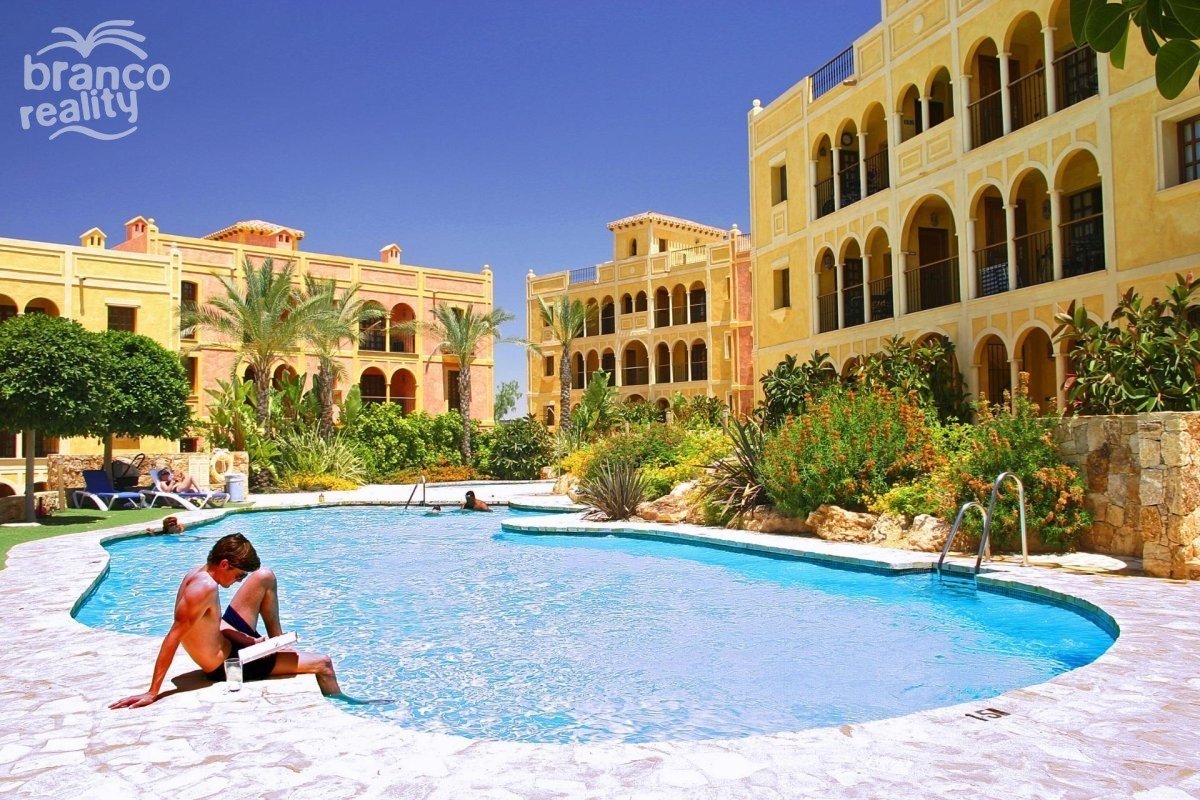 ÚŽASNÉ NOVÉ BYTY V RESORTU DESERT SPRINGS Ohromující třípokojové byty v prvním patře, které se nacházejí ve španělském nádvoří se společným bazénem a nabízejí výhled na krásně upravené společné zahrady. Exteriéry si zachovaly tradice s dřevěnými a železnými verandami a balkony a množstvím atraktivních vnějších detailů, zatímco interiéry nabízejí stylový moderní domov s moderním vzhledem. Mezi vysoce kvalitní povrchové úpravy patří atraktivně obložená koupelna a sprchový kout. Otevřená kuchyně s pracovní deskou „Compac“ odolnou proti poškrábání a skvrnám, s lednicí/mrazákem a pračkou integrovanými do skříněk. Sklokeramická varná deska, digestoř a mikrovlnná trouba. Klimatizace, dvojitá okna, zrcadlové skříně v ložnicích s vysoce kvalitní sanitární keramikou a vybavením. Každá nemovitost má k dispozici parkovací místo a soukromé střešní solárium. Snadný přístup ke všem zařízením resortu.