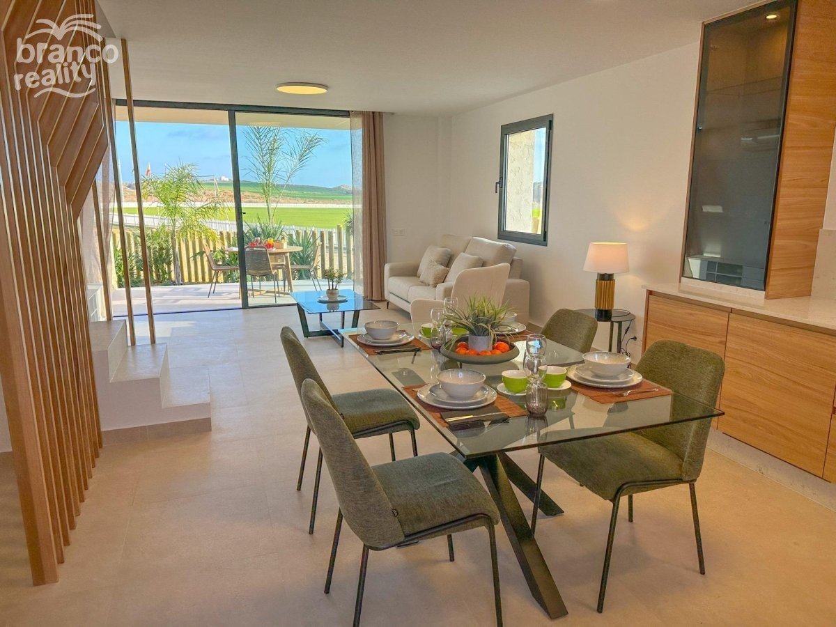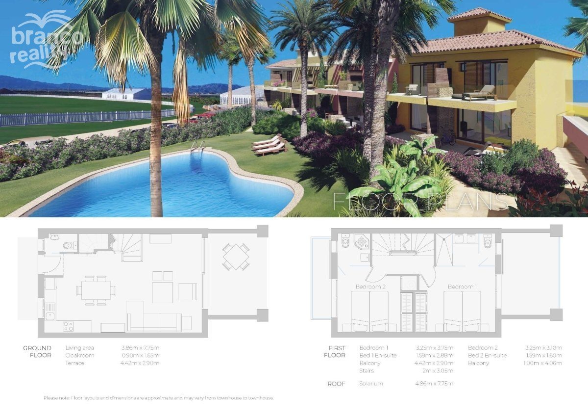 ÚŽASNÉ NOVOSTAVBY ŘADOVÝCH DOMŮ V RESORTU DESERT SPRINGS Jedinečná příležitost ke koupi jednoho z LIMITOVANÉHO výběru řadových domů se 2 ložnicemi, které byly uvedeny do prodeje v první fázi soukromého rezidenčního projektu se 14 nádhernými řadovými domy rozmístěnými kolem soukromého bazénu, v krásných upravených zahradách, na záviděníhodném místě v resortu Desert Springs. Moderní design a přirozené světlo jsou vynikajícími charakteristikami interiéru, který nabízí stylový domov s moderním vzhledem a poskytuje nádherný výhled na kriketový ovál a pohoří za ním až po pobřeží Středozemního moře. Z obývacího pokoje je vstup na krytou verandu. Nemovitost má k dispozici parkovací místo, zahrady, bazén a soukromé střešní solárium. Mezi vysoce kvalitní provedení patří atraktivně obložená koupelna a sprchový kout. Otevřená kuchyň s pracovní deskou „Silestone“ s lednicí/mrazákem a pračkou integrovanou ve skříních. Sklokeramická varná deska, digestoř a mikrovlnná trouba. Klimatizace, dvojitá okna, zrcadlové skříně v ložnicích s vysoce kvalitní sanitární keramikou a armaturami „Roca“ nebo „Porcelanosa“. Specifikace 2 ložnice 2 koupelny, en-suite Obývací pokoj / jídelna s verandou Soukromé střešní solárium Parkovací místo Společné zahrady Společný bazén Uzavřený komplex s ostrahou Úžitková plocha 96 m2 Další vybavení 11 m2 Střešní terasa 33 m2 Domy se nacházejí v jediném evropském mezinárodně oceňovaném rodinném resortu a mistrovském golfovém hřišti Desert Golf Course. Desert Springs Resort je jedinečný resort, který se nachází v jedné z nejklidnějších a nejvyhledávanějších enkláv na pobřeží Andalusie v Cuevas del Almanzora a Vera v Almeríi a nabízí nejlepší výběr cenově dostupných luxusních nemovitostí ve Španělsku, od apartmánů po řadové domy a vily všech velikostí, vše postavené dle našich náročných specifikací. Je to oceňované golfové, sportovní a rekreační útočiště zasazené mezi skalnaté výchozy a smaragdově zelené fairwaye, zasazené do luxusního komplexu. Resort je obklopen nedotčenou přírodou a pyšní se nádherným výhledem na významné horské pásma a Středozemní moře.