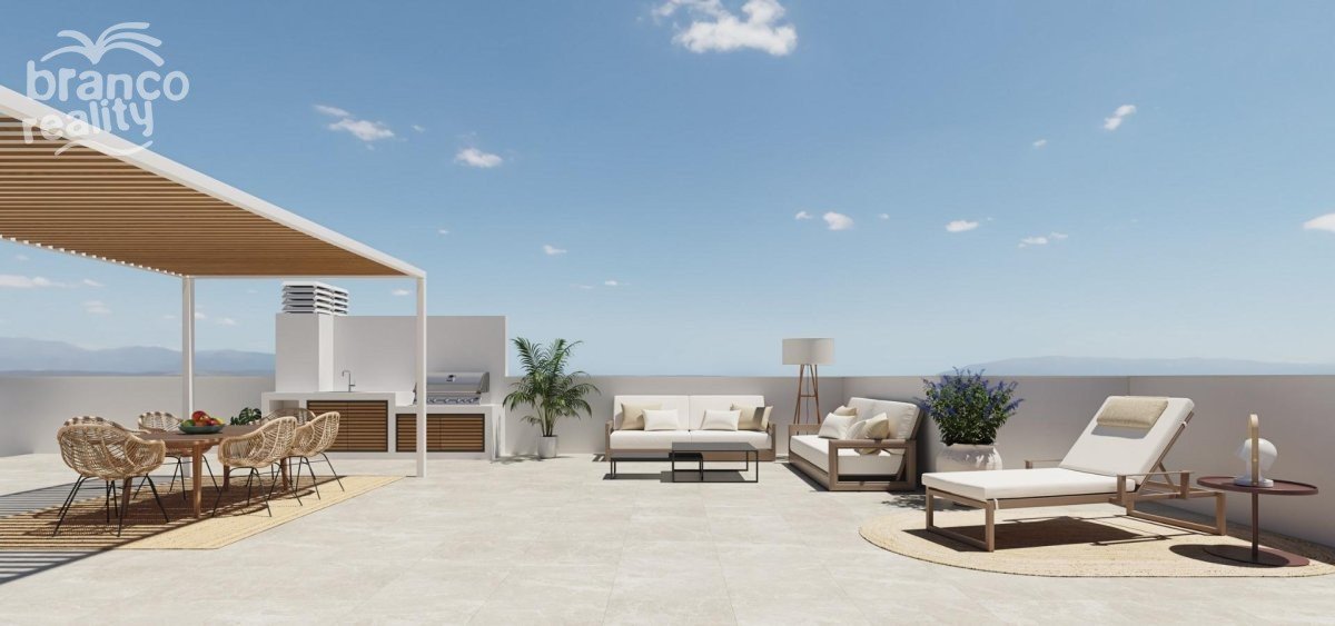 Moderní apartmány v Pilar de la Horadada – exkluzivní novostavba rezidenčního komplexu Objevte nový rezidenční komplex 12 stylových apartmánů s prostornými společnými prostory, které se nacházejí v pulzujícím městě Pilar de la Horadada na pobřeží Costa Blanca. Tento uzavřený komplex nabízí moderní vybavení a je navržen tak, aby poskytoval pohodlí a komfort na prvotřídním místě, v blízkosti všech základních služeb a oblíbených atrakcí. Výjimečné vybavení pro pohodlný životní styl Rezidenční komplex nabízí soukromou venkovní garáž, parkování kol s elektrickými nabíjecími stanicemi, rozlehlé upravené zahrady a moderní bazén s plážovou částí a lehátky. Pro větší pohodlí jsou k dispozici také šatny a toalety. Projekt je postaven z vysoce kvalitních materiálů, energeticky úsporných systémů a špičkových technologií, jako je dálkové otevírání dveří. Promyšleně navržené apartmány Vyberte si z apartmánů se 2 ložnicemi, otevřenými kuchyněmi, prostornými obývacími prostory a terasami. Apartmány v přízemí mají soukromé zahrady, zatímco apartmány v horním patře mají terasy a solária. Každý apartmán je navržen tak, aby maximalizoval prostor a přirozené světlo, s orientací na jih pro optimální pohodlí. Mezi moderní prvky patří LED osvětlení, předinstalovaná klimatizace, plně vybavené koupelny a moderní kuchyňské spotřebiče. Výhodná poloha v blízkosti pláží a golfových hřišť Pilar de la Horadada nabízí snadný přístup k denním potřebám, sportovnímu vyžití a krásným plážím, které jsou vzdálené pouhé 3 km. Město má dobré dopravní spojení, letiště Murcia je vzdálené 40 km a letiště Alicante 75 km. Užijte si golfová hřiště světové úrovně, z nichž pět se nachází v okruhu 15 km, a nakupujte v nákupním centru La Zenia, které je vzdálené pouhých 15 minut jízdy autem.