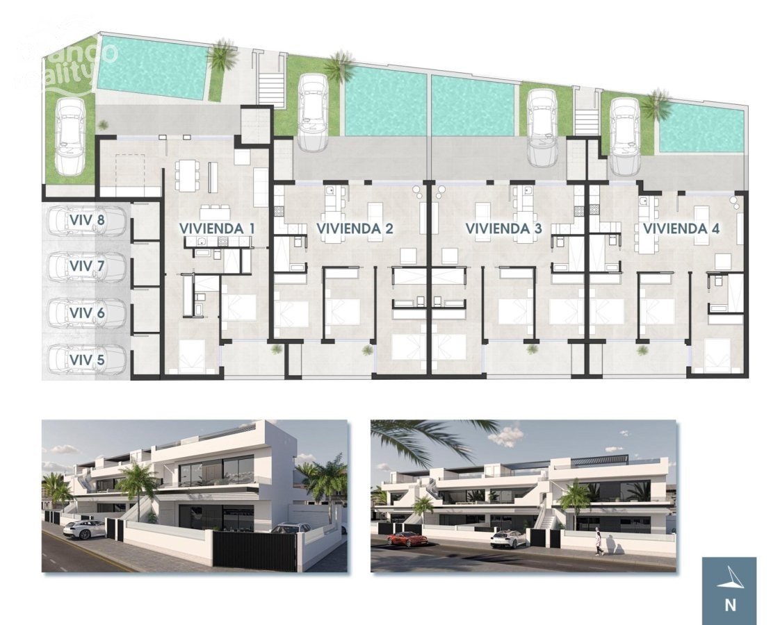 NOVOSTAVBA BUNGALOVÝCH APARTMÁNŮ V SAN PEDRO DEL PINATAR Novostavba rezidenčního komplexu krásných moderních bungalovových apartmánů se 3 ložnicemi v San Pedro Del Pinatar. Bungalovy v přízemí mají terasu se soukromým bazénem. Bungalovy v horním patře mají velké solárium se soukromým bazénem. Všechny bungalovy mají parkovací místo a úložný prostor. San Pedro del Pinatar se vyznačuje privilegovanou polohou na pobřeží Mar Menor a Středozemního moře a láká ty, kteří se zajímají o plachtění a vodní sporty, a nabízí kotviště v marině a jachtařské kluby. Pláže a přírodní bahenní lázně lákají ty, kteří hledají bezpečné slunce, moře a písek. San Pedro del Pinatar má zavedenou komunitu a nabízí vynikající škálu aktivit, včetně krytého bazénu a sportovních zařízení, a také celoroční program společenských aktivit za příjemného zimního počasí. Výhody bahenních lázní, typických pro tento region, nebo klidné vody Mar Menor, podpořily růst Lo Pagánu, který v současné době nabízí veškeré vybavení. Kromě toho má vynikající polohu, pouhých 5 minut od obchodního centra Dos Mares. Letiště Murcia/Corvera je vzdálené 30 minut jízdy a letiště Alicante hodinu jízdy.