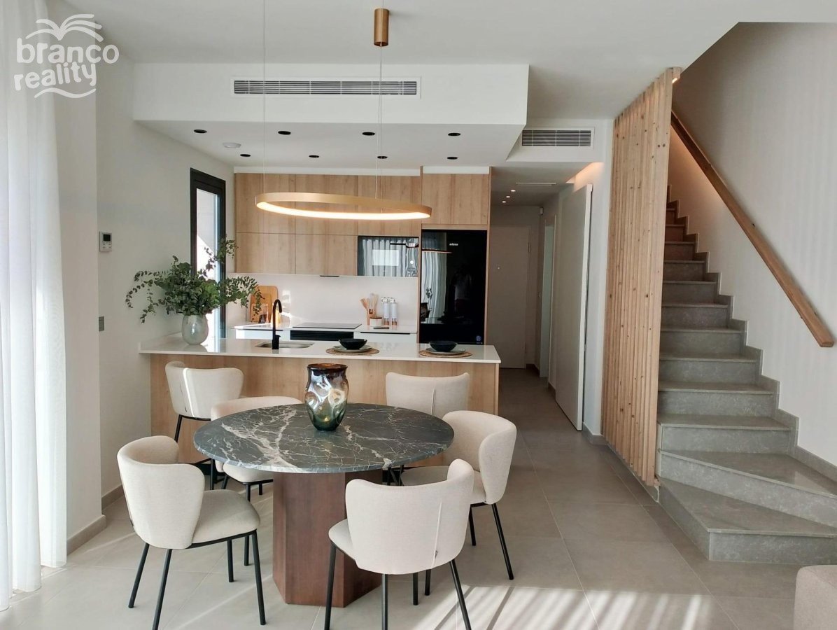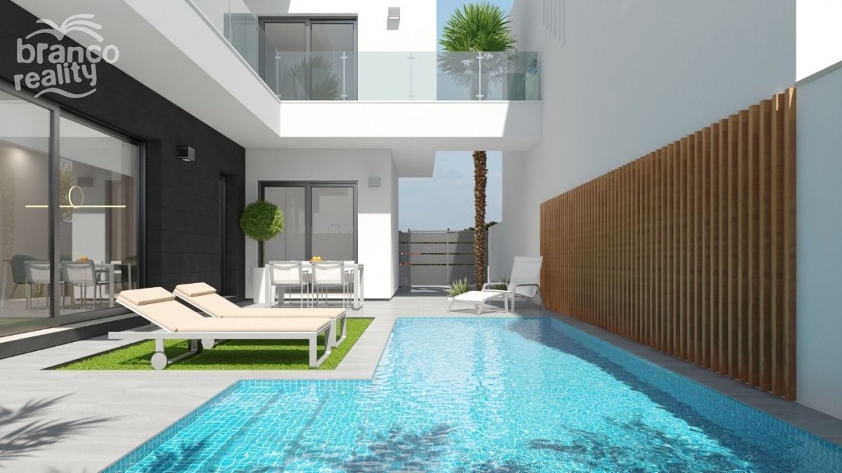 NOVOSTAVBA VILY V GOLFOVÉM REZORTU RODA Novostavba 12 vil v rezidenční čtvrti Roda Golf s cyklistickou vzdáleností od pláže. Krásné vily se rozkládají na dvou podlažích, mají 3 ložnice, 2 koupelny, otevřenou kuchyň s prostorným obývacím pokojem, vestavěné skříně, terasu, soukromou zahradu s bazénem a parkovací místo. Ideální lokalita pro ty, kteří rádi tráví čas blízko pláže i golfu. Jen pár kilometrů od skvělých golfových hřišť, např. Mar Menor Golf Resort, La Manga Club, Lo Romero (Pilar de la Horadada), Las Ramblas, Villamartin, Campoamor a Las Colinas. Kousek autem od historických španělských měst Cartagena a Murcia. Pouze 15 minut jízdy od známého nákupního centra La Zenia Boulevard. Vily se nacházejí 30 minut od letiště Murcia - Corvera a 1 hodinu od letiště Alicante.