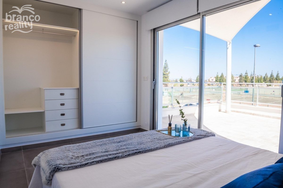 NOVOSTAVBY VILY V LOS ALCAZARES Novostavby vily v Los Alcazares. Krásné vily mají 3 ložnice a 2 koupelny, otevřenou kuchyň s obývacím pokojem, vestavěné skříně, soukromou zahradu s bazénem a garáž. Kuchyň vybavena nerezovým dřezem, lednicí, myčkou nádobí, sklokeramickou varnou deskou (3 varné zóny), troubou a digestoří. Kuchyňské spotřebiče Siemens. Kompletní instalace klimatizace ve všech místnostech. Možnost střešního solária za příplatek. Rezidenční vily se nacházejí 1 km od pláže a města Los Alcázares, kde se můžete věnovat různým vodním sportům, obklopené několika golfovými hřišti. Oblast je propojena dálnicí s městy Cartagena, Murcia a Alicante a zbytkem pláží na pobřeží Costa Cálida a Costa Blanca. Letiště Murcia Corvera autem 20 minut.