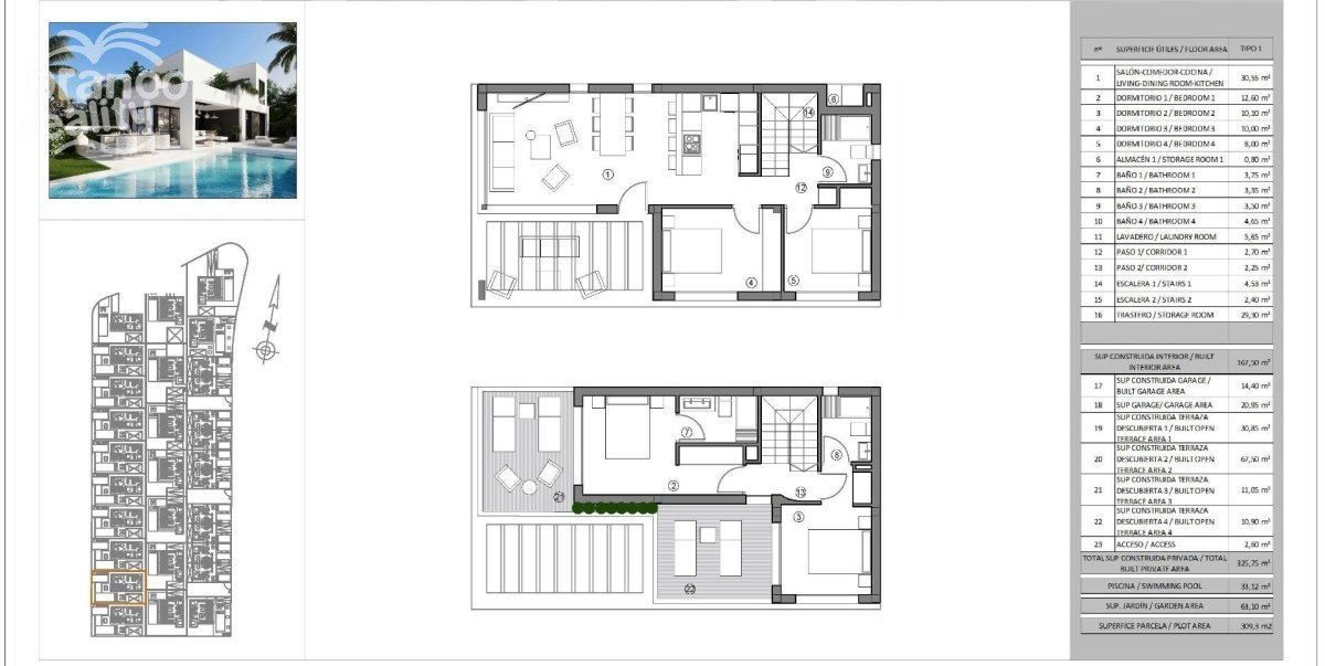 Nové vily ve Finestratu - luxusní, příroda a výhled na moře Exkluzivní rezidenční komplex v Sierra Cortina, Benidorm-Finestrat Objevte tento nový luxusní rezidenční komplex v Sierra Cortina, Finestrat, jedné z nejexkluzivnějších oblastí Costa Blanca. Tento komplex nabízí 30 vil avantgardního designu s možností dvojdomků a samostatných vil, všechny s nádherným výhledem na moře a hory. Tento komplex se nachází v klidném prostředí, přesto v blízkosti veškeré občanské vybavenosti, a je ideální pro ty, kteří hledají soukromí, pohodlí a přístup k nejlepším plážím a službám v Benidormu. Moderní design a prostorné bydlení Vily byly navrženy v moderním stylu s optimalizovaným přirozeným světlem a panoramatickým výhledem. Budete si moci vybrat z různých modelů s variantami od 2 do 4 ložnic a některé designy zahrnují suterén s anglickou terasou, což umožňuje přidání dalších ložnic. Každý dům má: 2 podlaží se soukromými terasami s výhledem na moře. Soukromý bazén a zahrada pro vaše potěšení. Garáž na pozemku s prostorem pro vaše vozidlo. Otevřená kuchyň integrovaná do obývacího pokoje. Vestavěné skříně a úložný prostor. Technická místnost pro pohodlí. Výhodná poloha na pobřeží Costa Blanca Tento exkluzivní rezidenční komplex se nachází v Sierra Cortina, jedné z nejprestižnějších oblastí Costa Blanca, obklopený přírodou a s přístupem k prvotřídním službám. Pouhé 3 km od moře, tento komplex se nachází vedle dvou golfových hřišť a nedaleko zábavního parku Terra Mitica a luxusního hotelu Asia Gardens. Nabízí také rychlé spojení na hlavní silnice a letiště v regionu. Vzdálenosti k hlavním zajímavým místům Pláže Benidorm - 3 km. Golfová hřiště Villaitana a Sierra Cortina - 2 km. Nákupní centrum La Marina - 2 km. Zábavní park Terra Mitica - 1,5 km. Letiště Alicante - 40 km. Bydlete v exkluzivní oblasti se všemi vymoženostmi Finestrat je okouzlující obec v Marina Baixa, která se nachází jen pár minut od Benidormu. Kombinace hor a moře spolu s moderní infrastrukturou z něj činí bezkonkurenční místo pro bydlení nebo investici. Nenechte si ujít příležitost pořídit si zbrusu novou vilu v této privilegované lokalitě. Kontaktujte nás ještě dnes pro více informací a pro domluvení prohlídky.