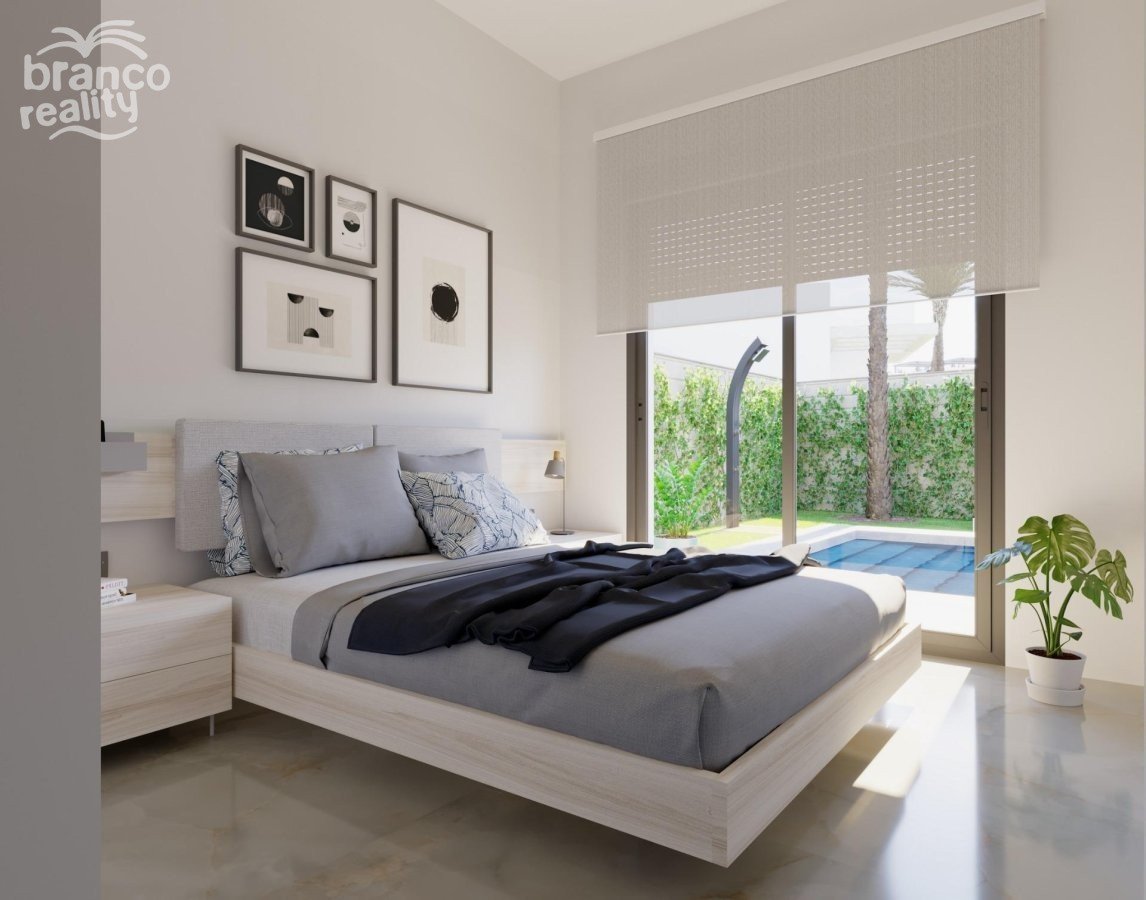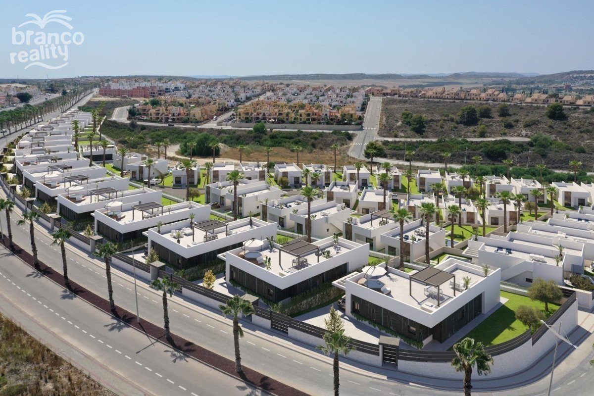 NOVOSTAVBY VILY V GOLFOVÉM REZORTU ALGORFA Novostavba rezidenčních samostatných vil v golfovém resortu La Finca v Algorfě. Vily se nacházejí na 1 patře a skládají se ze 3 ložnic, 2 koupelen, otevřené kuchyně, obývacího pokoje s výhledem na terasu, solária, soukromé zahrady s bazénem a parkování. Rezidenční komplex se nachází v golfovém resortu La Finca v obci Algorfa, v oblasti Vega Baja na jižní Costa Blanca. Pouhých 15 minut jízdy od písečných pláží Guardamar del Segura a pouhých 35 minut od letiště Alicante. Větší města Almoradi, Benijófar a Ciudad Quesada jsou vzdálena jen kousek jízdy. Torrevieja a Orihuela Costa s velkými nákupními centry jsou vzdáleny 15 minut jízdy.