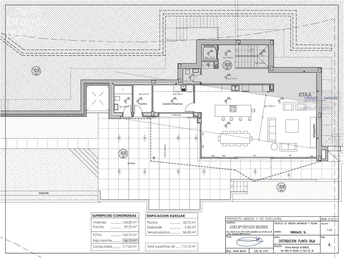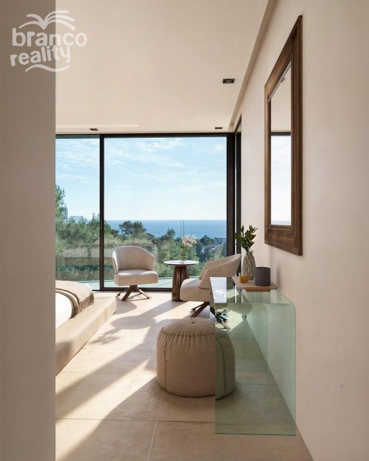Luxusní novostavba vily s panoramatickým výhledem na moře v Raco de Galeno, Benissa Costa Exkluzivní lokalita na pobřeží Costa Blanca Tato luxusní vila se nachází v prestižní urbanizaci Raco de Galeno v Benissa Costa a nabízí perfektní kombinaci moderního designu a středomořského kouzla. Nemovitost se nachází pouhé 2 km od nejbližších pláží a pouhých 5 km od dálnice AP-7, která poskytuje rychlý přístup do Morairy, Calpe a dalších známých destinací na Costa Blance. Mezinárodní letiště Alicante je vzdálené přibližně 80 km a prestižní golfová hřiště, jako je Club de Golf Ifach a Altea Golf, jsou vzdálena 10 až 15 km. Moderní architektura a prostorné interiéry Vila, navržená s ohledem na maximalizaci přirozeného světla a nádherný výhled na moře, se vyznačuje moderní architekturou s velkými okny od podlahy ke stropu a bezproblémovou integrací vnitřního i venkovního prostoru. Dům se rozkládá na několika úrovních a je propojen soukromým výtahem a nabízí čtyři prostorné ložnice, každá s vlastní koupelnou, a další toaletu pro hosty. Hlavní apartmá se pyšní přímým přístupem na soukromou terasu s úchvatným výhledem na Středozemní moře. Výjimečné obytné a zábavní prostory Otevřený obývací a jídelní prostor doplňuje plně vybavená designová kuchyň se špičkovými spotřebiči, ideální jak pro každodenní bydlení, tak pro pořádání setkání. Nemovitost obklopují rozlehlé terasy, které vytvářejí několik venkovních relaxačních a zábavních prostor. Luxusní venkovní životní styl Vrcholem této vily je nekonečný bazén s panoramatickým výhledem na pobřeží. Velkorá terasa u bazénu poskytuje ideální prostor pro opalování, stolování pod širým nebem nebo pro nezapomenutelné západy slunce s rodinou a přáteli. Prémiové funkce a pohodlí Tato nově postavená vila zahrnuje pokročilé technologie chytré domácnosti, podlahové vytápění a klimatizaci s potrubím, což zajišťuje celoroční pohodlí. Nemovitost nabízí také podzemní patro s dostatkem prostoru pro další využití. Ideální jako trvalý nebo rekreační dům Díky plnému stavebnímu povolení a očekávanému dokončení do 18 měsíců od rezervace představuje tato vila jedinečnou příležitost vlastnit moderní mistrovské dílo v jedné z nejvyhledávanějších lokalit na Costa Blance. Její blízkost písečných pláží, okouzlujících pobřežních měst, přístavů, nákupních center a outdoorových aktivit zvyšuje její atraktivitu jak pro trvalé bydlení, tak i jako luxusní rekreační útočiště. Zajistěte si svou vysněnou vilu v Raco de Galeno, Benissa Costa, a vychutnejte si dokonalý středomořský životní styl s úchvatným výhledem na moře a bezkonkurenčním komfortem.