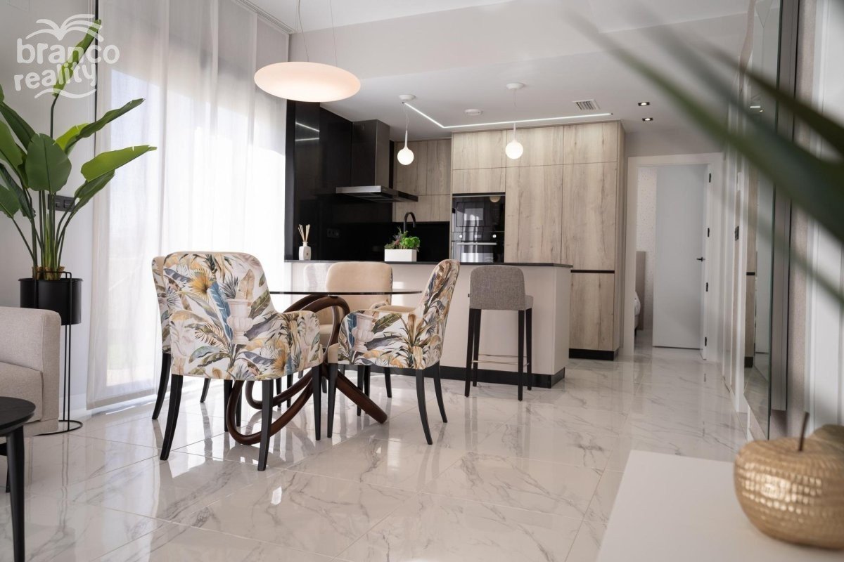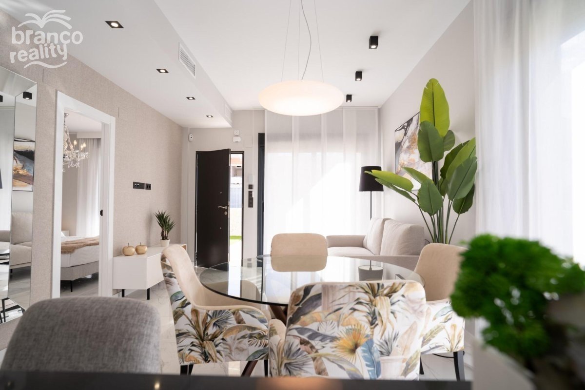 Novostavby bungalovů v Pilar de la Horadada Moderní domy blízko pláže Objevte tento exkluzivní nový rezidenční komplex v Pilar de la Horadada, který nabízí bungalovy jen 2 km od pláže. Tyto domy, navržené pro pohodlí a styl, jsou skvělou příležitostí, jak si užít život na Costa Blance. Prostorné a stylové domy Tento developerský projekt nabízí domy se 2 nebo 3 ložnicemi, 2 koupelnami a soukromým parkováním. Vyberte si z: Bungalovy v přízemí se soukromou zahradou. Bungalovy v horním patře se soukromým soláriem. Každá nemovitost je postavena z vysoce kvalitních materiálů a moderních povrchových úprav, včetně: Předinstalace klimatizace s potrubím. Hliníkové venkovní tesařské práce, dvojité zasklení a vstřikované hliníkové okenice. Bezpečnostní vstupní dveře pro větší klid. Aerotermální systém pro efektivní ohřev vody. Vestavěné skříně v ložnicích. Plně vybavené koupelny s nábytkem a sprchovými zástěnami. Exkluzivní komunitní prvky Tento soukromý rezidenční komplex se pyšní krásným společným bazénem a upravenými zahradami, které vytvářejí ideální prostor pro relaxaci. Nachází se hned za centrem města, takže obyvatelé mohou pěšky dojít do supermarketů, restaurací, barů, škol a dalších nezbytných služeb. Výhodná poloha v Pilar de la Horadada Pilar de la Horadada je okouzlující španělské město v nejjižnější části pobřeží Costa Blanca. Nabízí pulzující hlavní ulici s řadou obchodů, supermarketů, restaurací a malebných náměstí. Úžasné pláže Torre de la Horadada a Mil Palmeras s jemným zlatým pískem a malebnou promenádou jsou vzdálené pouhých 5 minut jízdy. Město nabízí také dobře vybudované cyklistické a turistické stezky a řadu sportovních aktivit. Pohodlný přístup k klíčovým destinacím Golfové hřiště Lo Romero – 5 km (10 minut jízdy). Letiště Corvera (Murcia) – 40 km (40 minut jízdy). Letiště Alicante – 55 km (55 minut jízdy). Nákupní centra (La Zenia Boulevard) – 15 km (15 minut jízdy). Přístav Torre de la Horadada – 3 km (5 minut jízdy). Zajistěte si svůj vysněný domov ještě dnes Nenechte si ujít tuto fantastickou příležitost vlastnit zbrusu nový domov na výborném místě. Kontaktujte nás ještě dnes pro více informací a pro domluvení prohlídky!