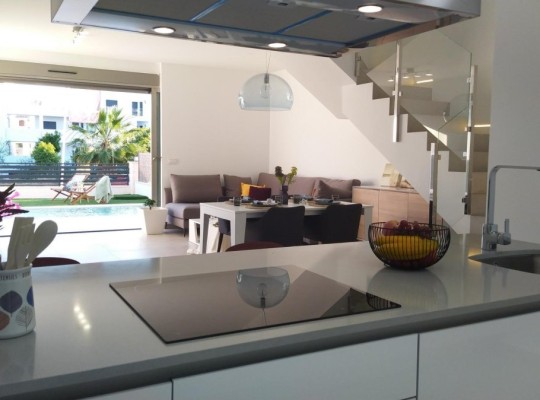 MODERNÍ NOVOSTAVBY VILY VE VILLAMARTINU Novostavby vily ve 2 modelech na výběr: 1 nebo 2 patra. Všechny se 3 ložnicemi a 2 nebo 3 koupelnami, soukromým bazénem, parkováním uvnitř pozemku a soukromým soláriem. Pozemek je po celém obvodu oplocen s přístupovými branami pro vozidla a chodce. Pozemek je rozdělen na parkovací plochu s povrchovou úpravou z tiskaného betonu, trávník a zpevněnou plochu se stejnou podlahou jako uvnitř. Vnitřní tesařské práce mají vysoce bezpečnostní pancéřové vstupní dveře. Vnitřní dveře i skříně jsou lakovány v bílé barvě. V kuchyni najdeme nábytek v bílé barvě a křemennou pracovní desku v barvě laděné s podlahou domu. V koupelnách jsou sprchové vaničky a integrované skleněné zástěny, koupelnový nábytek a nástěnná sanitární keramika. Vila má předinstalace pro klimatizaci s potrubím. Tyto fantastické nemovitosti se nacházejí v blízkosti náměstí Villamartin Plaza a golfového hřiště Villamartin, kde najdete řadu barů a restaurací, supermarkety, banky, stanoviště taxi a místní autobusovou zastávku. Pláže Orihuela Costa jsou vzdálené pouhých 5 minut jízdy autem, stejně jako nové nákupní centrum Zenia Boulevard (největší nákupní centrum v provincii Alicante). Letiště v Alicante a Murcii jsou vzdálená 45 minut jízdy autem.