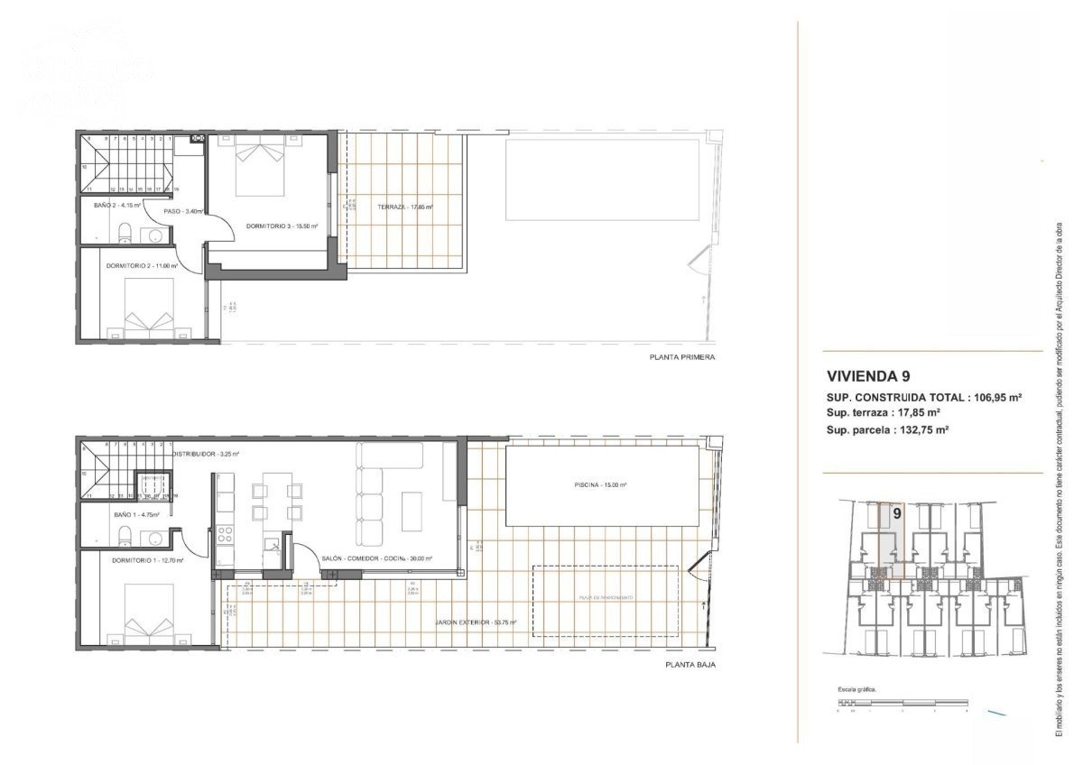 Moderní dvojdomky se soukromým bazénem u moře v Santiagu de la Ribera Nacházejí se v oblasti San Blas v Santiagu de la Ribera v Murcii, jedné z nejatraktivnějších oblastí Mar Menor. Tento developerský projekt je navržen s 12 vilami se 3 ložnicemi a 2/3 koupelnami, včetně soukromého bazénu, terasy a solária s letní kuchyní ve vybraných domech. Vily se vyznačují elegantním a funkčním interiérem, plně vybavenými kuchyněmi se všemi spotřebiči a předinstalací pro klimatizaci. Tento developerský projekt nabízí jedinečnou příležitost užít si design, pohodlí a styl jen pár minut od moře. Exkluzivní novostavba pouhý 1 km od pláže Objevte tento limitovaný developerský projekt dvojdomků nacházejících se v Santiagu de la Ribera, okouzlujícím pobřežním městečku na murcijském pobřeží, známém pro svůj uvolněný životní styl, čisté pláže a vynikající celoroční klima. Tyto nové domy se nacházejí pouhý 1 km od pobřeží Mar Menor a nabízejí perfektní kombinaci soukromí, pohodlí a blízkosti základních služeb a možností volného času. Moderní design s funkčním uspořádáním Každá vila je pečlivě rozložena na dvou podlažích a některé jednotky se mohou pochlubit střešním soláriem, které poskytuje dostatek prostoru pro moderní bydlení. Nemovitosti se vyznačují: 3 prostornými ložnicemi, z nichž jedna je v přízemí, 2 nebo 3 koupelnami, soukromou zahradou a bazénem, terasou v prvním patře a některé jednotky se střešním soláriem, ideálním pro opalování nebo zábavu hostů, soukromým parkováním na pozemku. Dva domy mají navíc instalované fotovoltaické panely pro úsporu energie. Vysoce kvalitní povrchové úpravy a prvky Domy postavené s důrazem na detail a podle moderních standardů zahrnují: Zabezpečené vstupní dveře, motorizované hliníkové okenice, vestavěnou kuchyň se spotřebiči, koupelnový nábytek se zrcadlem a světlem, porcelánovou sprchovou vaničku vyrobenou na míru do koupelny s instalovanými zástěnami, předinstalaci klimatizace. Tyto domy jsou navrženy tak, aby si je mohly užívat po celý rok, ať už jako hlavní rezidenci, druhý domov nebo investici do rekreačního pronájmu. Výhodná poloha na pobřeží Costa Cálida Santiago de la Ribera nabízí dynamický středomořský životní styl se vším na dosah ruky: Pláž (Mar Menor) – 1 km Nákupní centrum La Ribera – 2 km Golfové hřiště Roda – 5 km Letiště San Javier – 6 km Přístav Lo Pagán – 4 km Nákupní centrum Dos Mares – 3 km Vynikající silniční dostupnost do Murcie (40 km) a Cartageny (30 km) Díky bohaté místní kultuře, týdenním trhům, promenádám a možnostem vodních sportů je Santiago de la Ribera ideálním místem k vychutnání si toho nejlepšího z Costa Cálida. Splňte si sen o životě na pobřeží Nenechte si ujít tuto jedinečnou příležitost ke koupi elegantní, nově postavené vily v jedné z nejvyhledávanějších oblastí murcijského pobřeží. Kontaktujte nás pro více informací nebo pro domluvení prohlídky.