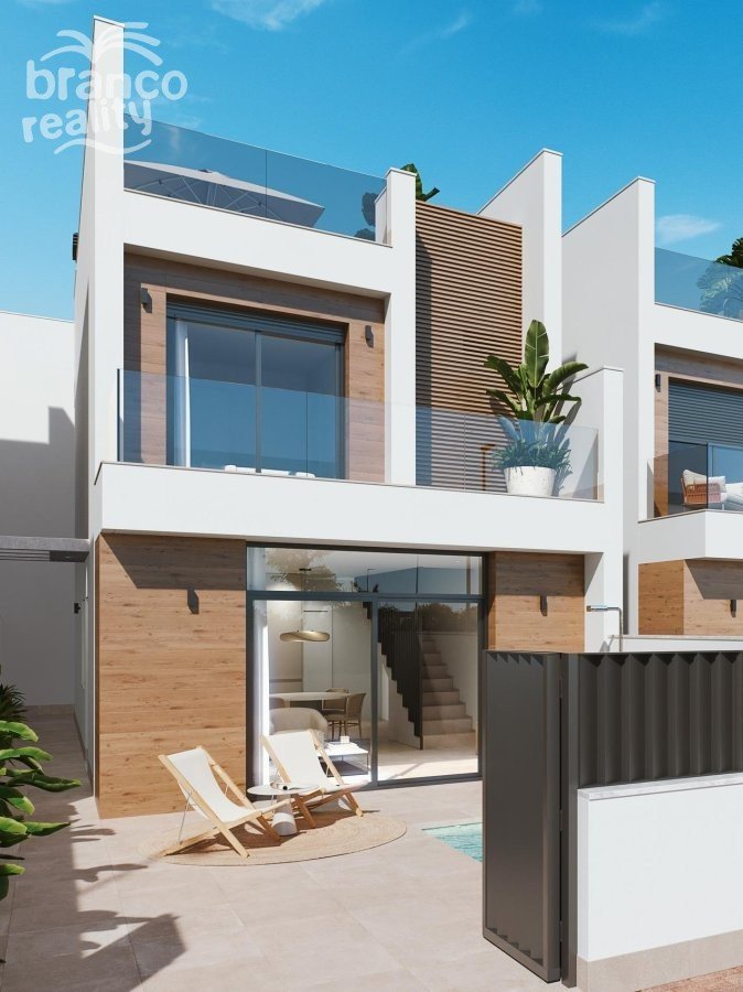 NOVOSTAVBA VILY V SAN PEDRO DEL PINATAR Nový developerský projekt vil a řadových domů v San Pedro del Pinatar, Murcia. Luxusní rezidenční komplex složený ze 16 řadových a samostatně stojících vil, všechny se soukromým bazénem, terasou, soláriem a parkovacím místem na pozemku. Každá nemovitost má 3 ložnice a 2 koupelny a také šatnu v hlavní ložnici. Nemovitosti byly navrženy v moderním stylu a s otevřeným konceptem, který se skládá z plně vybavené kuchyně a obývacího pokoje s jídelnou. Projekt se nachází v San Pedro del Pinatar, Murcia, obklopen veškerou občanskou vybaveností, sportovním zařízením, v blízkosti několika golfových hřišť a 5 minut od Středozemního moře a pláží Mar Menor. Nemovitost bude splňovat nejvyšší standardy a bude vybavena: Soukromým bazénem s LED osvětlením a venkovní sprchou. Plně vybavenou kuchyní s troubou a mikrovlnnou troubou, vestavěnou myčkou nádobí a lednicí s mrazákem, sklokeramickou varnou deskou a digestoří. LED osvětlení: uvnitř nemovitosti (jídelna, kuchyň, chodby a koupelny) i ve venkovních prostorách. Motorizované žaluzie v obývacím pokoji a hlavní ložnici. Šatna v hlavní ložnici s policemi, zásuvkovou skříňkou, výsuvnými tyčemi a zrcadlem. Šatní skříně se zásuvkami. Kompletní koupelny s umyvadlem, závěsnou toaletou s vestavěnou nádržkou, zrcadlem, dešťovou sprchou a zástěnami. Předinstalace podlahového vytápění v koupelnách. Předinstalace klimatizačních potrubí. Předinstalace solárních panelů. Solárium. Parkování uvnitř pozemku. Výhodná poloha San Pedro del Pinatar na Mar Menor a pobřeží Středozemního moře láká zájemce o plachtění a vodní sporty a nabízí kotviště v přístavu a u jachtařských klubů, zatímco pláže a přírodní bahenní lázně lákají ty, kteří hledají slunce, moře a písek pro bezpečí. Výhody bahenních lázní, typických pro tento region, nebo klidných vod Mar Menor, podporovaly růst Lo Pagán-San Pedro del Pinatar, který nyní nabízí veškeré vybavení. Má také vynikající polohu, pouhých 5 minut od nákupního centra Dos Mares. Letiště Murcia/Corvera je vzdálené 30 minut jízdy a letiště Alicante hodinu jízdy.