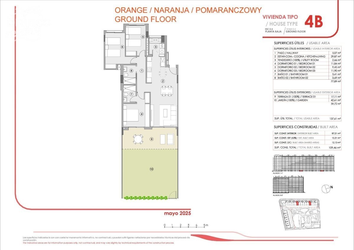 Novostavba apartmánů v Punta Prima pouhých 250 metrů od moře Exkluzivní rezidenční komplex s prvotřídními společnými prostory na pobřeží Costa Blanca Představujeme moderní novostavbu rezidenčního komplexu s 250 apartmány v Punta Prima, jedné z nejvyhledávanějších oblastí Torrevieja. Tento projekt, který se nachází pouhých 250 metrů od moře, nabízí jedinečnou příležitost bydlet v blízkosti pláže se všemi vymoženostmi soukromého resortu. Domy se 2 a 3 ložnicemi a velkými terasami Apartmány jsou k dispozici v konfiguraci se 2 nebo 3 ložnicemi a 2 koupelnami, všechny s otevřenou kuchyní integrovanou do obývacího pokoje, což maximalizuje pocit prostoru a přirozeného světla. Byty v přízemí mají soukromé zahrady, střední patra nabízejí velké terasy a penthousy mají solária pro celoroční užívání si slunce. Každá jednotka zahrnuje parkovací místo a úložný prostor, což zajišťuje pohodlí a další úložný prostor. Společné prostory pro celou rodinu Rezidenční komplex byl navržen tak, aby nabízel výjimečnou kvalitu života. Mezi společné prostory patří tři bazény (jeden z nich je vyhřívaný), posilovna s vířivkou, kurt na paddle tenis, kurt na petanque a upravené zahrady. Nejmenší mají k dispozici vlastní dětský bazén a hřiště určené pro jejich bezpečnou zábavu. Vysoce kvalitní povrchové úpravy a energetická účinnost. Vnější truhlářské práce z PVC s tepelnou přepážkou. Dvojité zasklení a motorizované žaluzie v ložnicích. Vestavěná kuchyň se spotřebiči. Koupelny vybavené sprchovou zástěnou, skříňkou, zrcadlem a podlahovým vytápěním. Klimatizace využívající aerotermální tepelné čerpadlo. Bezpečnostní vstupní dveře. Parkování kol. Strategická poloha s blízkou vybaveností. Punta Prima se nachází pouhých 5 km od centra Torrevieji a má vynikající zdravotní, vzdělávací a dopravní infrastrukturu. Mezinárodní letiště Alicante je vzdálené pouhých 45 km. Pláž Punta Prima: 250 m. Golfové hřiště Villamartín: 7 km. Nákupní centrum La Zenia Boulevard: 4 km. Univerzitní nemocnice Torrevieja: 3 km. Přístav Torrevieja: 6 km. Ideální investice pro bydlení nebo dovolenou. Užijte si středomořské prostředí s celoročním vybavením, kvalitními plážemi a vynikajícím dopravním spojením. Nenechte si ujít příležitost pořídit si nový domov v jedné z nejvyhledávanějších lokalit na Costa Blance. Kontaktujte nás ještě dnes pro více informací nebo pro domluvení prohlídky.