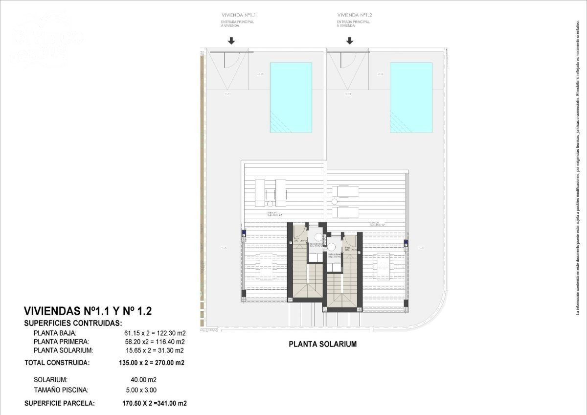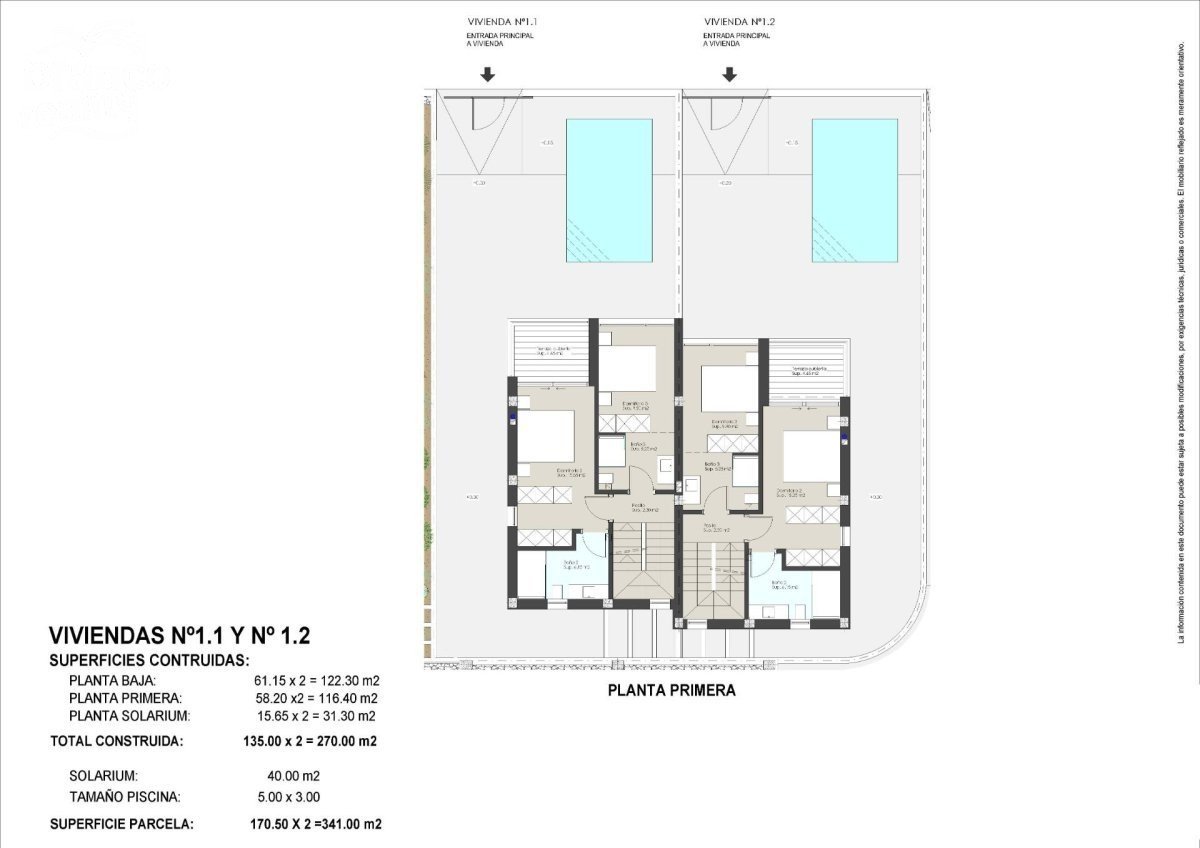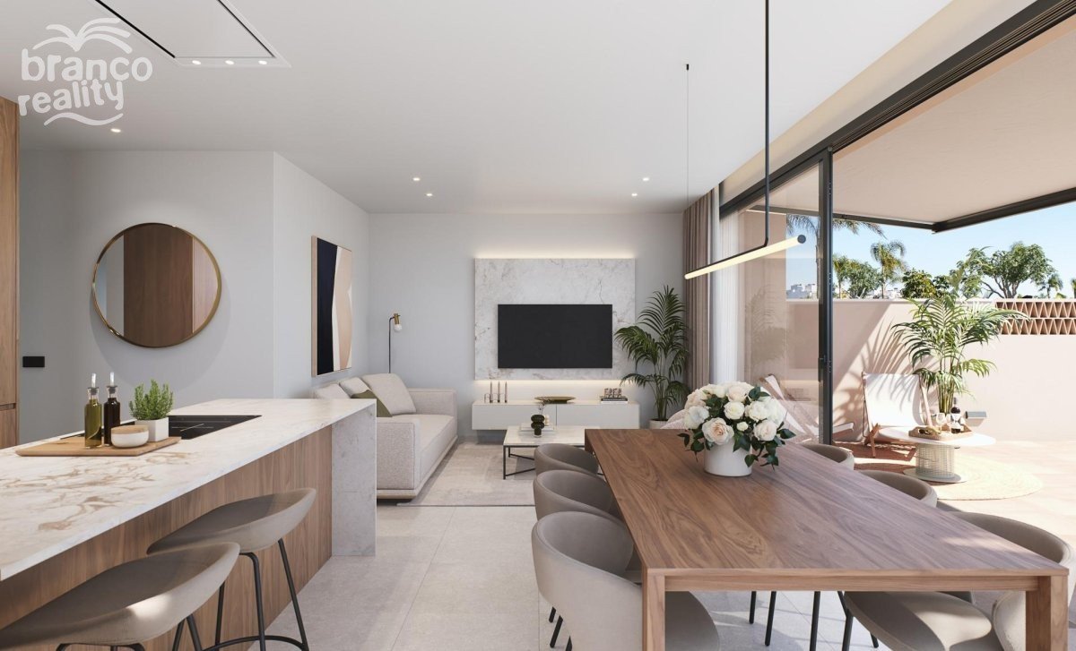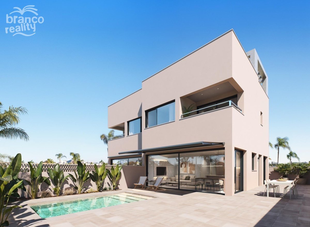Exkluzivní rezidenční komplex 2 luxusních dvojdomků s výhledem na moře na pláži Las Higuericas, Torre de la Horadada. Objevte tyto působivé dvojdomky nacházející se v Torre de la Horadada, ve druhé linii pláže Las Higuericas. Díky modernímu a elegantnímu designu, prostorným pokojům a vysoce kvalitním materiálům byly tyto nemovitosti navrženy tak, aby nabízely maximální pohodlí a exkluzivitu. S privátním bazénem o rozměrech 5×3 m, parkováním na pozemku a soláriem o rozloze 40 m2: velkolepý otevřený prostor ideální pro relaxační zónu, grilování nebo užívání si slunce s ničím nerušeným výhledem. Každá vila má samostatný přístup z okolních ulic, protože zde nejsou žádné sousední budovy. Díky klidným ulicím a rozsáhlým zeleným plochám kolem rezidenčního komplexu jsou tyto nemovitosti ideální pro mladé rodiny. Vily mají pozemek o rozloze 170 m2 a zastavěnou plochu 135 m2. Vily jsou postaveny se třemi ložnicemi a třemi koupelnami (dvě z nich en-suite) na dvou podlažích. Kuchyně je plně vybavená s možností přizpůsobení a zahrnuje spotřebiče. Jídelna s otevřeným prostorem je obklopena velkými okny, která poskytují příjemný zdroj přirozeného světla, s přímým přístupem k bazénu a do zahrad s osvětlením, zavlažováním a místní vegetací. Vybrané povrchové úpravy s vysoce kvalitními materiály, luxusní design na míru a maximální komfort spolu s klimatizací a topením ve všech prostorách činí vilu příjemnou jak v horkých létech, tak i v mírných zimách, což umožňuje žít zde po celý rok. Tyto nemovitosti se nacházejí v jedné z nejlepších oblastí Costa Blanca a nabízejí klidné prostředí, přesto s veškerou občanskou vybaveností v blízkosti: restaurace, supermarkety, golfové hřiště a nákupní centra. Dvě dvojvily se nacházejí ve druhé řadě pláže v Las Higuericas, v Torre de la Horadada, ráji v každém ohledu, kde si můžete užít pobřeží, rozlehlost Středozemního moře, promenádu, osvěžující koupání v moři, vodní sporty, plachtění, surfování, šnorchlování a pouhých 8 km od golfového hřiště Lo Romero, jednoho z 21 golfových hřišť na Costa Blanca. Je to 5 minut od přístavu La Torre de la Horadada a 10 minut od přístavů San Pedro del Pinatar a nejlepších restaurací, kde můžete ochutnat tu nejlepší středomořskou kuchyni. Nemluvě o blízkosti dálnice AP7, která spojuje naši rezidenční oblast se dvěma letišti s mezinárodními destinacemi, Corvera (44 km) a Altet v Alicante (75 km). Nejbližším městem k projektu je Pilar de la Horadada (1 km), klidná vesnice se všemi druhy služeb, školami, zdravotními středisky, policií, lékárnami atd. V blízkosti se nacházejí také dvě nákupní oblasti, nákupní centrum Dos Mares v San Javieru (5 minut jízdy autem) a bulvár La Zenia v Orihuela Costa (15 minut jízdy autem).