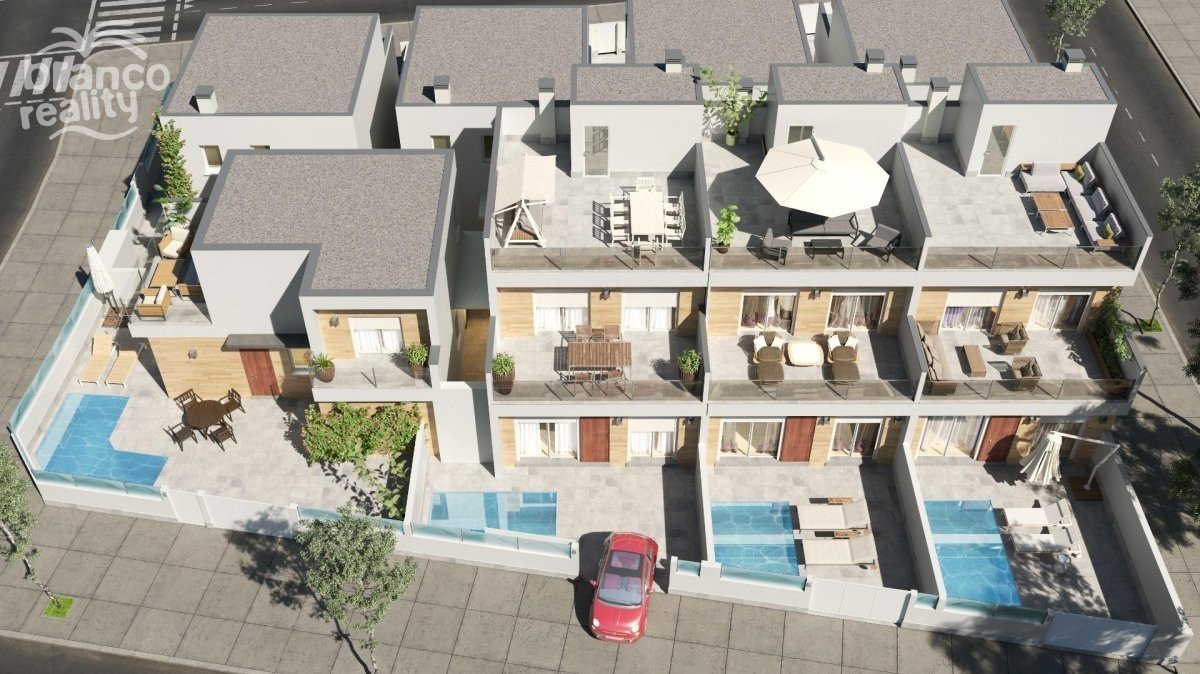 NOVOSTAVBA POLOVIČNÍCH VILL V SAN PEDRO DEL PINATAR Novostavba 8 samostatných vil a polovičních vil v San Pedro Pinatar, všechny se soukromým bazénem, terasou, soláriem a parkovacím místem na pozemku. Každá nemovitost má 3 ložnice a 2 plně vybavené koupelny, otevřenou kuchyň s prostorným obývacím pokojem a vestavěné skříně. San Pedro del Pinatar se vyznačuje privilegovanou polohou na pobřeží Mar Menor a Středozemního moře a láká zájemce o plachtění a vodní sporty. Nabízí kotviště v marině a jachtařské kluby. Pláže a přírodní bahenní lázně lákají ty, kteří hledají bezpečné slunce, moře a písek. San Pedro del Pinatar má zavedenou komunitu a nabízí vynikající škálu aktivit, včetně krytého bazénu a sportovních zařízení, a také celoroční program společenských aktivit za příjemného zimního počasí. Výhody bahenních lázní, typických pro tento region, nebo klidné vody Mar Menor, podpořily růst Lo Pagánu, který v současné době nabízí veškeré vybavení. Navíc má vynikající polohu, pouhých 5 minut od obchodního centra Dos Mares.