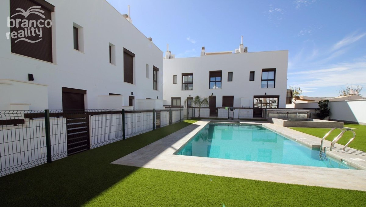 Moderní řadové domy a dvojdomky v Pilar de la Horadada Objevte tento exkluzivní rezidenční komplex s pouhými šesti moderními dvojdomky a řadovými domy v klidném městečku Pilar de la Horadada na jižním cípu pobřeží Costa Blanca. Tyto novostavby, navržené s moderní architekturou a vysoce kvalitními povrchovými úpravami, nabízejí dokonalou kombinaci pohodlí a stylu ve vyhledávané lokalitě. Prostorné dispozice se třemi a čtyřmi ložnicemi Každý dům se pyšní prostornými obytnými prostory s otevřenou kuchyní a obývacím pokojem navrženým pro maximalizaci přirozeného světla. Vyberte si z dispozic se třemi nebo čtyřmi ložnicemi, se dvěma nebo třemi koupelnami v závislosti na modelu. Dispozice v přízemí zahrnují dvě terasy: přední terasu s prostorem pro soukromé parkování a zadní terasu s přímým přístupem ke společnému bazénu. V prvním patře se nachází další terasa u ložnic, zatímco v patře střešní solárium poskytuje panoramatický výhled a ideální prostor pro venkovní zábavu. Vysoce kvalitní interiérové provedení Interiéry jsou zařízeny prvotřídními materiály, včetně hladkých omítek, porcelánových dlaždic v celém domě a vestavěných skříní v každé ložnici. Otevřené kuchyně jsou plně vybaveny moderními skříňkami. Mezi další pohodlí patří předinstalace pro klimatizaci s potrubím a aerotermální systémy pro energeticky úspornou ohřev vody. Vybavení komunity a soukromé parkování Obyvatelé si mohou užívat dobře udržovaný společný bazén, který je ideální pro relaxaci za slunečných dnů. Každý dům má soukromé parkovací místo na pozemku, což zajišťuje bezpečnost a pohodlí. Pilar de la Horadada: Tradiční kouzlo na Costa Blance Pilar de la Horadada je okouzlující španělské město známé svou příjemnou atmosférou a tradiční architekturou. Centrum města je jen kousek pěšky, kde najdete supermarkety, místní obchody, restaurace, bary a malebná náměstí. Užijte si poklidnou procházku po hlavní ulici, ochutnejte autentickou středomořskou kuchyni nebo prozkoumejte řemeslné butiky. Blízkost pláží a letišť Zažijte to nejlepší z pobřežního života na krásných písečných plážích Torre de la Horadada a Mil Palmeras, které jsou od vašeho nového domova vzdálené jen 5 minut jízdy (přibližně 2 km). Tyto pláže se pyšní čistou vodou, zlatým pískem a živou promenádou lemovanou kavárnami a restauracemi s výhledem na moře. Pro snadné cestování je letiště Corvera (Murcia) vzdálené přibližně 40 km (40 minut jízdy autem) a letiště Alicante asi 55 km (55 minut jízdy autem). Nákupní centrum La Zenia Boulevard je od projektu vzdálené 15 km (15 minut) a nabízí širokou škálu obchodů, restaurací a zábavy. Zajistěte si nový domov ještě dnes Nenechte si ujít tuto příležitost a pořiďte si zbrusu nový dvojdomek nebo řadový dům v Pilar de la Horadada. Tyto nemovitosti, které kombinují moderní design, špičkové povrchové úpravy a vynikající polohu v blízkosti pláží, obchodů a služeb, jsou ideální jako trvalé bydlení, rekreační dům nebo investice. Kontaktujte nás pro více informací a pro sjednání prohlídky.