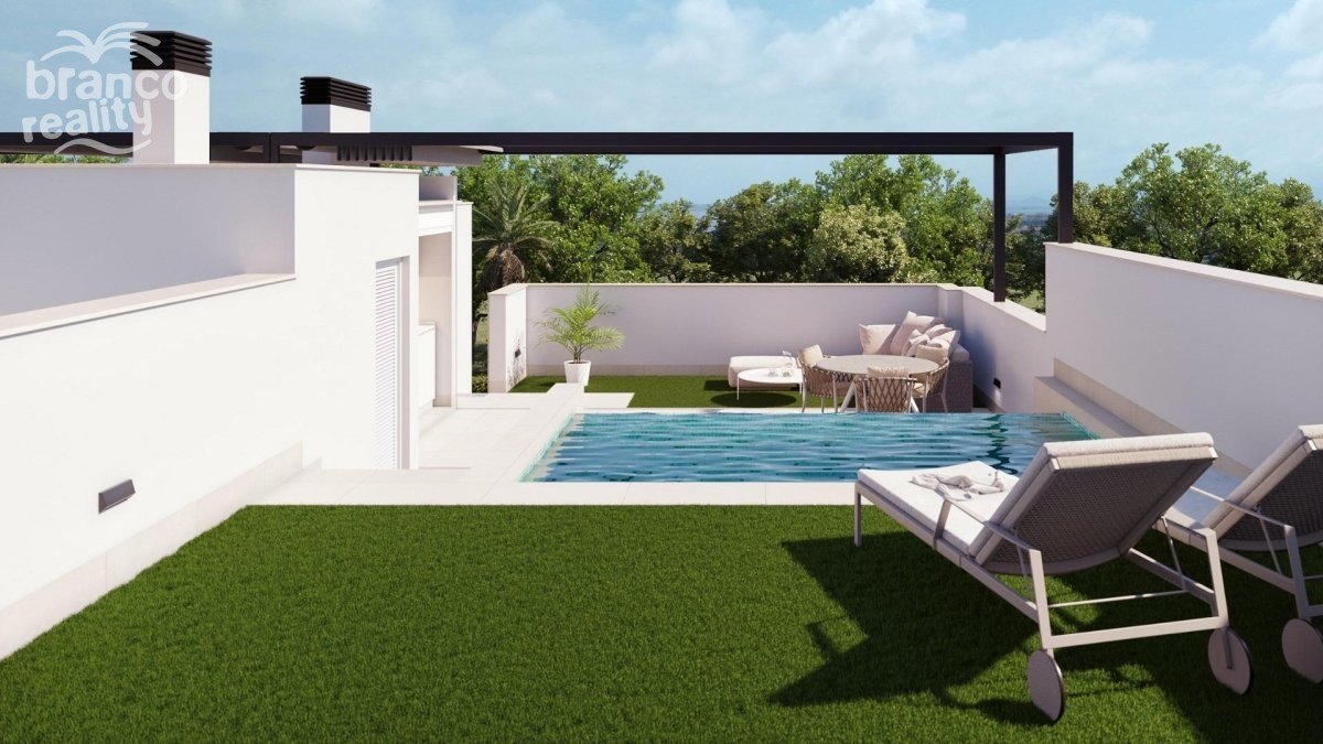 Butikový developerský projekt novostaveb s vlastními bazény v Pilar de la Horadada Exkluzivní rezidenční komplex v prvotřídní lokalitě na Costa Blance Objevte tento butikový novostavbu s pouhými 10 exkluzivními domy v Pilar de la Horadada, okouzlujícím pobřežním městečku na jihu Costa Blanca. Tento moderní projekt, který se nachází na okraji města, nabízí otevřený výhled na zelené parky a zároveň je vzdálený pouhé 2 km od středomořských pláží Torre de la Horadada. Užijte si pohodlí všech základních služeb v docházkové vzdálenosti, včetně supermarketů, restaurací, bank, škol a zdravotnických zařízení. Výběr dispozic se soukromými venkovními prostory Tento nový developerský projekt nabízí různé dispozice 2 a 3 ložnic, které vyhovují různým potřebám a životnímu stylu: Domy v přízemí mají soukromou zahradu, bazén s plážovou částí a plně upravený exteriér s automatickým zavlažováním. Domy v horním patře se pyšní soláriem s letní kuchyní, pergolou, venkovní toaletou a soukromým bazénem s vestavěnou vířivkou a také vyhrazenou úschovnou kol v přízemí. Dvojdomky nabízejí velkorysý vnitřní i venkovní prostor se soukromou zahradou a bazénem, ideální pro rodinné bydlení nebo dlouhodobé pobyty. Všechny domy mají soukromé parkovací místo. Prémiové prvky a vysoce kvalitní povrchové úpravy Všechny domy jsou navrženy s ohledem na pohodlí, efektivitu a styl a jsou vybaveny: Plně instalovanou klimatizací s potrubím Elektrickými roletami a zesílenými vchodovými dveřmi LED osvětlením pro vnitřní i venkovní prostory Vestavěnými kuchyněmi se spotřebiči BOSCH nebo SIEMENS Stylovými koupelnami s podlahovým vytápěním, zrcadly, skříňkami pod umyvadlo a sprchovými zástěnami Moderním designem, který maximalizuje přirozené světlo a funkčnost Tyto promyšleně navržené domy nabízejí bezproblémovou kombinaci vnitřního pohodlí a venkovního bydlení, ideální pro celoroční užívání si teplého středomořského klimatu. Klíčové vzdálenosti: Pláže: 2 km Golfové hřiště Lo Romero: 6 km Nákupní centrum Dos Mares (San Javier): 10 km Nákupní centrum Zenia Boulevard (Orihuela Costa): 12 km Mezinárodní letiště Murcia: 40 km Letiště Alicante: 70 km Ideální pro bydlení nebo investici Díky omezené dostupnosti a privilegované poloze představuje tento nový developerský projekt v Pilar de la Horadada fantastickou příležitost jak pro trvalé bydlení, tak pro investici. Ať už hledáte rekreační dům, dům pro seniory nebo nemovitost k pronájmu, tyto moderní domy nabízejí vše, co potřebujete. Kontaktujte nás ještě dnes a zajistěte si nový domov na Costa Blance.