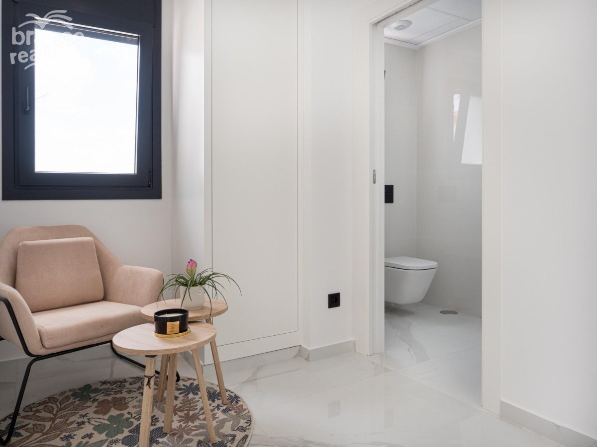 Moderní novostavby vil na prodej v San Pedro del Pinatar – blízko pláže a centra města. Exkluzivní rezidenční projekt v Costa Cálida. Tento nový butikový developerský projekt se skládá ze čtyř moderních samostatných vil, ideálně situovaných v klidné rezidenční čtvrti nedaleko centra San Pedro del Pinatar v Murcii. Tyto domy se nacházejí pouhých 1,4 km od pláží Lo Pagán a nabízejí perfektní kombinaci pohodlí, soukromí a blízkosti základních služeb a pobřežních atrakcí. San Pedro del Pinatar je jednou z nejvyhledávanějších destinací na pobřeží Costa Cálida, známou svými přírodními solnými lagunami, léčebnými bahenními koupelemi a širokou škálou možností pro volný čas, stravování a wellness. Díky snadné dostupnosti Středozemního moře i Mar Menor je tato lokalita ideální pro celoroční užívání si slunce a uvolněný životní styl. Moderní design a chytré uspořádání Každá vila nabízí: 3 ložnice a 3 koupelny, včetně dvou en-suite koupelen Otevřený prostor kuchyně a obývacího pokoje s přímým vstupem na prostornou terasu Ložnice a koupelna v přízemí, ideální pro hosty nebo vícegenerační bydlení Soukromý bazén s LED osvětlením a venkovní solární sprchou Velké střešní solárium pro opalování, zábavu nebo relaxaci Pozemek se soukromým parkovacím místem Domy byly navrženy s ohledem na moderní bydlení a nabízejí vysoce kvalitní povrchové úpravy a chytré instalace: Bezpečnostní vstupní dveře Motorizované hliníkové okenice Předinstalace klimatizace s potrubím Podlahové vytápění v koupelnách Vybavené koupelny s osvětlenými zrcadly a nábytkem K dispozici je ukázková vila k prohlídce, která vám umožní osobně zažít vysoký standard a uspořádání. Prvotřídní lokalita s vynikajícím spojením Tyto vily se nacházejí na ideálním místě, kde si můžete užít klid i pohodlí. Veškeré denní služby, včetně obchodů, restaurací, supermarketů a zdravotních středisek, jsou v docházkové vzdálenosti. Oblast má navíc dobré spojení silnicí i veřejnou dopravou. Vzdálenosti k hlavním zajímavým místům: Pláž Lo Pagán: 1,4 km Pláže Mar Menor: 2 km Nákupní centrum Dos Mares: 3,5 km Golfové hřiště Lo Romero: 10 km Golfový resort Roda: 9 km Mezinárodní letiště Murcia: 35 km (25 minut autem) Letiště Alicante: 75 km (45 minut autem) Rezervujte si svou novou vilu v San Pedru ještě dnes Toto je vzácná příležitost vlastnit nově postavenou vilu v jedné z nejžádanějších pobřežních oblastí Murcie. Vzhledem k omezenému počtu dostupných jednotek nás kontaktujte a získejte více informací, domluvte si prohlídku nebo si zajistěte svůj vysněný domov u moře.