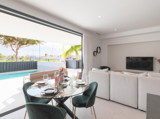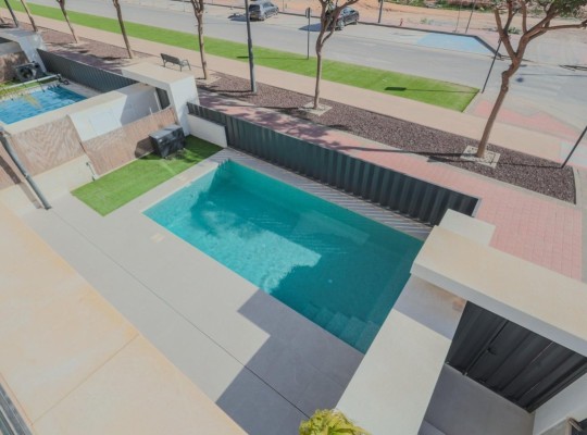 Luxusní novostavby vil v Santa Rosalía Lake and Life Resort, Murcia Exkluzivní vily v prvotřídním uzavřeném komplexu Objevte tuto výjimečnou kolekci nově postavených vil nacházejících se v prestižním resortu Santa Rosalía Lake and Life Resort, jednom z nejinovativnějších a nejvyhledávanějších rezidenčních resortů v regionu Murcia. Tento komplex, obklopený renomovanými golfovými hřišti a pouhé 4 km od pláží Mar Menor a města Los Alcázares, nabízí jedinečnou kombinaci luxusu, přírody a moderního bydlení. Moderní design s prémiovými prvky Každá vila je promyšleně rozložena na třech podlažích a nabízí: 3 prostorné ložnice, každá s vlastní koupelnou Toaleta pro hosty pro větší pohodlí Otevřený obývací pokoj s jídelnou a plně vybavenou kuchyň Soukromou zahradu s bazénem a vodopádem Soukromé solárium ideální pro opalování nebo zábavu Suterén (surový) s flexibilním využitím Parkovací místo na pozemku Tyto domy jsou postaveny podle nejvyšších standardů, včetně: Obrněných vstupních dveří Klimatizace v přízemí a prvním patře Podlahové vytápění v koupelnách Aerotermální systém pro ohřev teplé vody LED osvětlení (vnitřní i venkovní) Elektrické rolety v ložnicích Vysoce výkonné hliníkové exteriérové tesařské práce s tepelnou izolací a dvojitým zasklením Balíček domácí automatizace je součástí balení Vestavěný gril pro venkovní stolování Vybavení resortového stylu pro luxusní životní styl Santa Rosalía Lake and Life Resort se rozkládá na více než 126 000 m² upravených zelených ploch. Obyvatelé mají exkluzivní přístup k: Křišťálově čistému jezeru ve stylu laguny o rozloze 17 000 m² s bílými písečnými plážemi Dva soukromé ostrovy, jeden s barem Několika plážovým chiringuitos Klubovně a rekreačním oblastem Stezkám pro pěší a cyklistiku Kurtům na paddle tenis a tenis, minigolfu, sportovním areálům Psím parkům a dětským herním zónám 24hodinové ostraze a hlavnímu vchodu s bránou Prvotřídní lokalitě s vynikajícím spojením Ideální poloze pro pohodlí a volný čas: Pláž a město Los Alcázares: 4 km Golfové hřiště Lo Romero: 9 km Golf Roda: 5 km Město Cartagena: 15 km Mezinárodní letiště Murcia: 22 km Nákupnímu centru Zenia Boulevard: 30 km Zajistěte si svou vilu ještě dnes Ať už hledáte hlavní bydliště, rekreační dům nebo investici s vysokou návratností, tyto vily v Santa Rosalía Lake and Life Resort nabízejí bezkonkurenční kvalitu a životní styl. Kontaktujte nás nyní a získejte více informací a domluvte si prohlídku.