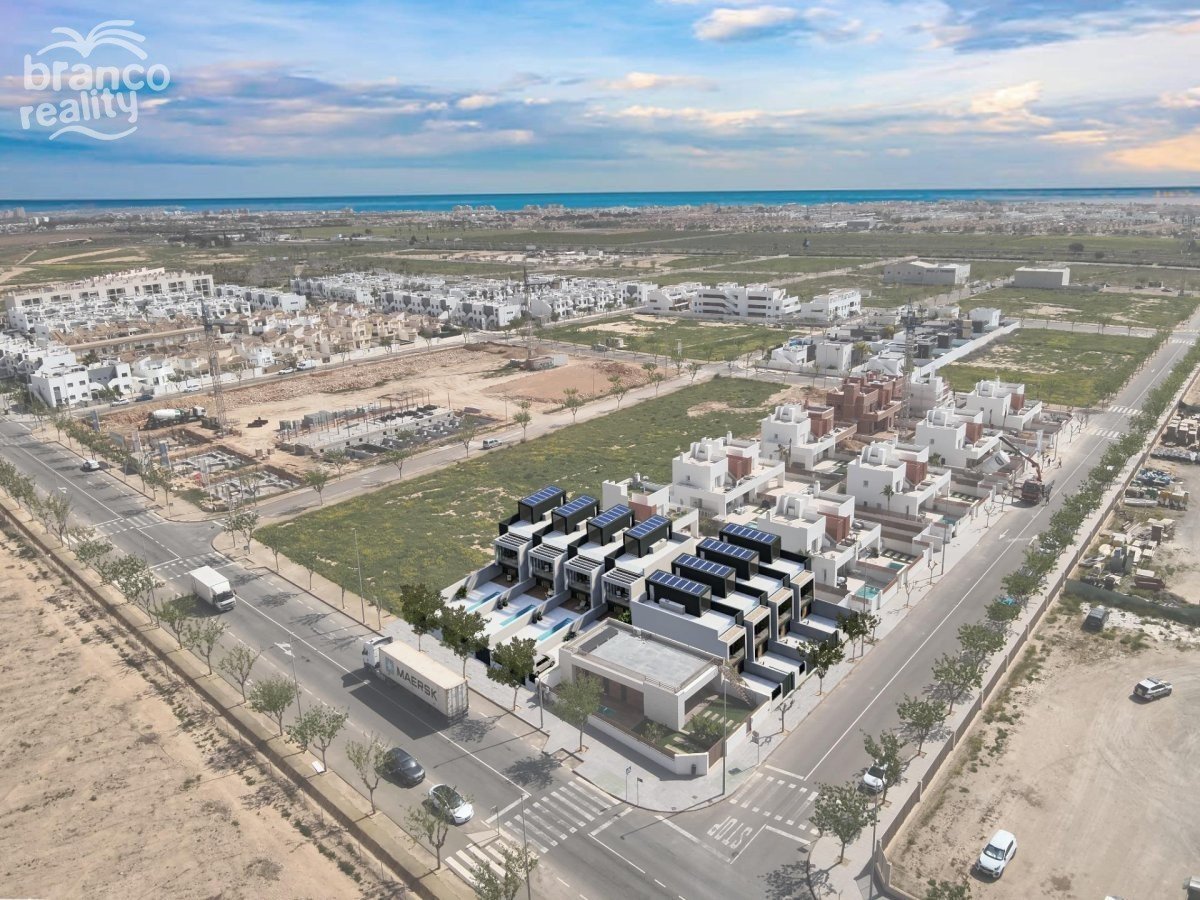 Udržitelné novostavby řadových domů v Pilar de la Horadada, Costa Blanca Moderní domy s technologiemi a energetickou účinností Objevte tento exkluzivní novostavbu v Pilar de la Horadada, jedné z nejatraktivnějších oblastí jižní Costa Blanca. Tento projekt řadových domů kombinuje moderní design, udržitelnost a technologie a nabízí pohodlný, efektivní a propojený životní styl. Rezidenční komplex se skládá z 8 dvojvil se 3 ložnicemi a 3 koupelnami, všechny s vlastními bazény, solárii s letními kuchyněmi a parkováním na pozemku. Kromě toho je jedna z nemovitostí dodávána plně zařízená a připravená k nastěhování, se 2 ložnicemi a 2 koupelnami. Elegantní a funkční vnitřní prostory Každý dům byl navržen s důrazem na detail: Plně vybavená kuchyň se spotřebiči Siemens nebo podobnými Koupelny s dřezy na pracovní desku, pákovými bateriemi a bezpečnostními skleněnými zástěnami Předinstalace klimatizace s potrubím Aerothermální systém pro ohřev teplé vody Vnitřní a venkovní LED osvětlení, včetně dekorativních lišt v kuchyni, obývacím pokoji a koupelnách Domy také zahrnují systém domácí automatizace pro ovládání žaluzií, venkovního osvětlení, klimatizace a bazénu, stejně jako fotovoltaickou instalaci se 6 solárními panely pro vlastní spotřebu. Soukromé venkovní plochy a solárium s letní kuchyní Užijte si velký venkovní prostor s: Soukromým bazénem se sprchou a LED bodovými světly Zahradou s integrovanými bodovými světly Soláriem s hliníkovou venkovní kuchyní, pracovní deskou a dřezem Vše bylo navrženo tak, abyste si mohli užívat středomořské klima po celý rok. Pilar de la Horadada: Kvalita života jen pár minut od moře Tato obec nabízí vynikající infrastrukturu, živý místní život a pláže oceněné modrou vlajkou, které jsou vzdálené pouhé 2 km. Najdete zde také cyklostezky, turistické stezky a mnoho sportovních aktivit. Klíčové vzdálenosti: Pláž Torre de la Horadada: 2 km Golfové hřiště Lo Romero: 5 km Přístav Torre de la Horadada: 3 km Nákupní centrum Zenia Boulevard: 15 km Letiště Murcia (Corvera): 40 km Letiště Alicante: 55 km Vyžádejte si informace a domluvte si prohlídku Toto je vaše příležitost k nákupu efektivního a moderního domu blízko moře v jedné z nejvyhledávanějších oblastí Costa Blanca. Kontaktujte nás ještě dnes pro více informací nebo pro domluvení osobní prohlídky.