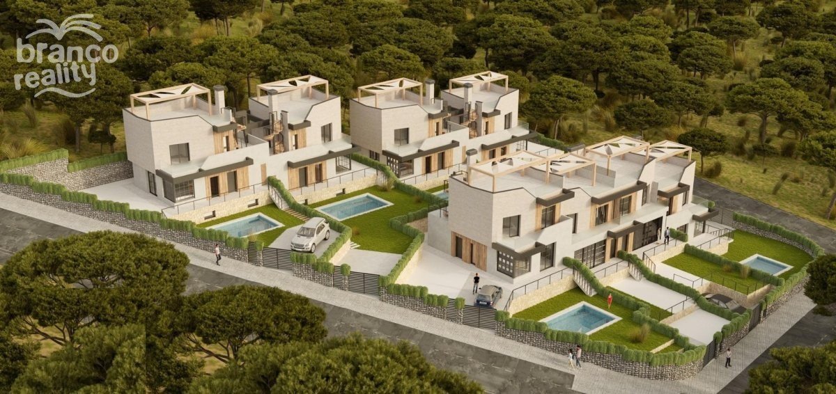 Novostavby moderních řadových domů a dvojdomků s několika terasami a soláriem, kompletně oplocené, s parkovacím místem pro vozidla a soukromým bazénem v Polopu. Moderní nemovitosti se 3 prostornými ložnicemi s vestavěnými skříněmi (hlavní ložnice v přízemí s koupelnou a šatnou), 2 prostornými koupelnami, velkým obývacím pokojem s jídelnou a otevřenou kuchyní, prostornými terasami. Kuchyň vybavená základními skříňkami a pracovními deskami ze silikónu, se keramickou varnou deskou, troubou, digestoří, lednicí, pračkou, myčkou nádobí a aerotermickým ohřívačem. Prvotřídní vlastnosti: vnitřní tesařské práce ze dřeva a bílých lakovaných laminátů, vnější tesařské práce z antracitově šedého PVC s dvojitým zasklením a tepelným mostem a automatické žaluzie s hliníkovými lamelami, keramické podlahy 1. kvality s protiskluzovou úpravou, hladké stěny, bezpečnostní dveře s 5 kotevními body, velké vestavěné skříně. Město Polop nabízí úžasnou škálu možností pro milovníky přírody obklopené přírodou a bezkonkurenčním klidem. Obec se pyšní středomořským klimatem s chladnějšími teplotami a čistším vzduchem a nachází se necelých 10 kilometrů od Benidormu, Altey a jejich pláží. Táhne se od řek Guadalest a Algar až po město Villajoyosa, včetně pláží Albir a Benidorm; ve vnitrozemí hraničí s Callosou a Guadalestem.