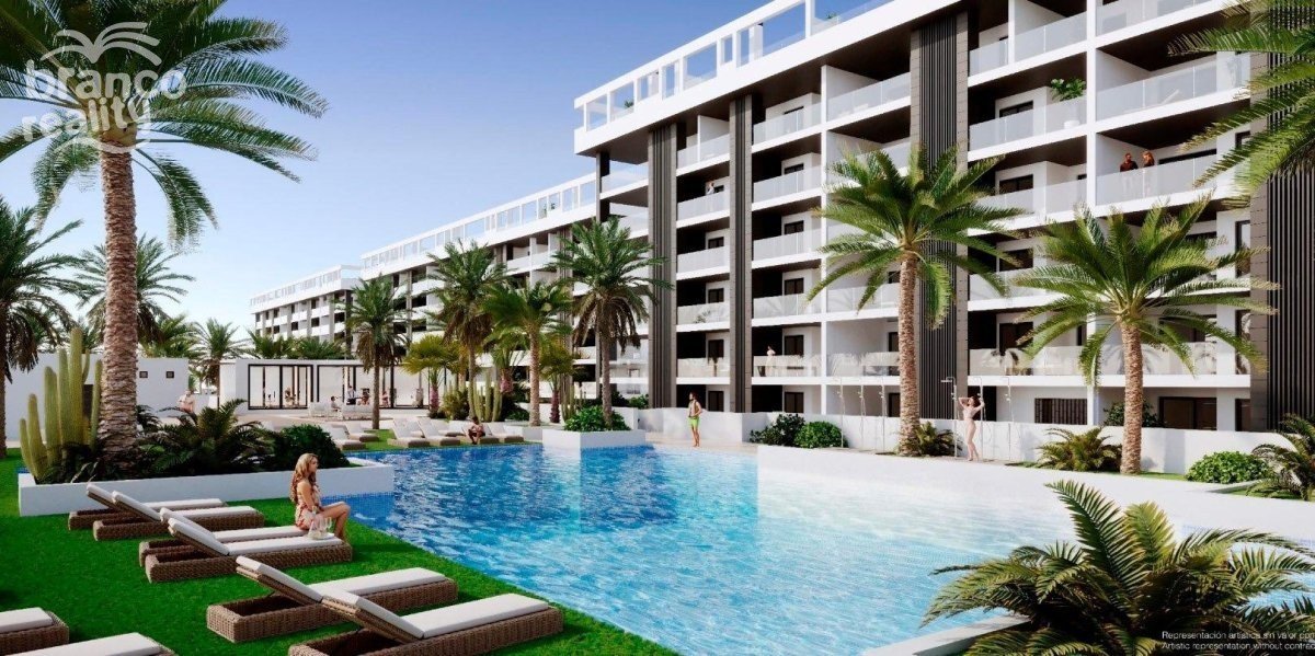 NOVOSTAVBA UZAVŘENÉHO KOMPLEKSU V TORREVIEJI POUHÝCH 700 M OD PLÁŽE Novostavba rezidenčního komplexu s 362 apartmány s velkými společnými prostory v Torrevieji. Můžete si vybrat mezi luxusními apartmány se 2 ložnicemi a 2 koupelnami, penthousy se 3 ložnicemi a 2 koupelnami se soukromým soláriem a apartmány v přízemí se 2 ložnicemi a 2 koupelnami a soukromou zahradou. - Moderní design a kvalitní povrchové úpravy a materiály - Téměř všechny apartmány mají výhled na moře - Všechny apartmány mají velké přední terasy s výhledem na společné prostory - Společné prostory se dvěma bazény pro dospělé, dětským bazénem, dětskou zónou, posilovnou, sportovním areálem a lázněmi, parkovištěm pro kola a vozidla - 700 metrů od pláže La Mata, 10 minut chůze - Před nákupním centrem Torremarina s Mercadonou, restauracemi, kavárnami a dalšími obchody Torrevieja je španělské město v provincii Alicante na pobřeží Costa Blanca. Je známé svým typicky středomořským klimatem a pobřežím. Podél písečných pláží se táhnou promenády s letovisky. Malé Muzeum moře a soli nabízí expozice o historii rybolovu a soli ve městě. Ve vnitrozemí se nachází přírodní park Lagunas de La Mata-Torrevieja se stezkami a dvěma slanými lagunami, jednou růžovou a druhou zelenou. Letiště Alicante je vzdálené 40 minut a letiště Murcia asi 1 hodinu jízdy.