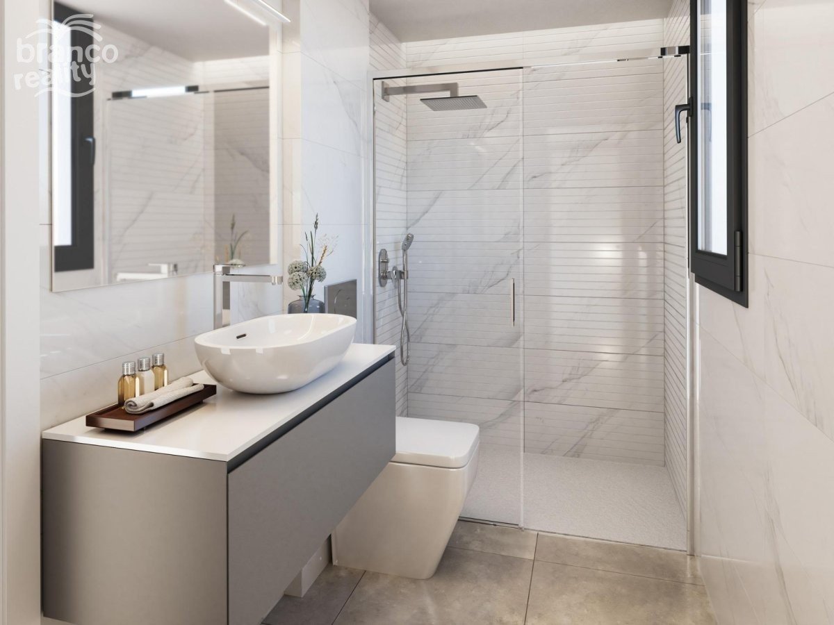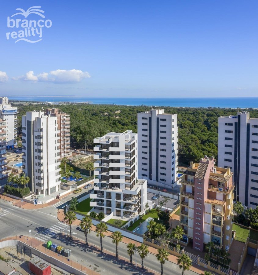 NOVOSTAVBA REZIDENČNÍHO DOMU V GUARDAMAR DEL SEGURA Moderní rezidenční styl s apartmány a penthousy se 3 ložnicemi, 2 koupelnami, otevřenou kuchyní s obývacím pokojem, vestavěnými skříněmi, prostornými terasami, podzemním parkováním. Plně zařízená kuchyň s nástěnnými a spodními skříňkami. Pracovní deska „Silestone“ nebo podobná s vestavěným dřezem. Podlahové vytápění v koupelnách. Budova bude mít 9 pater, z nichž nejvyšší budou penthousy s terasou a soukromým soláriem. Parkovací místo v suterénu, v závislosti na modelu. Guardamar del Segura je zasazen do různých ekosystémů, které vytvářejí jedinečnou krajinu, kde se v tomto městě setkává kouzlo a krása Středomoří, které je vymezeno nábřežním parkem s více než 11 km pokrytých přírodních dun s borovicemi, které lemují pláže s jemným zlatým pískem a tvoří jedinečný les ve Středomoří, vysoce chráněný přírodní park. Čisté vody jsou ideální pro provozování vodních sportů. Guardamar představuje středomořskou a valencijskou kuchyni. Řeka Segura, její tradiční ovocné sady a klima nám nabízejí rozmanitá jídla, zeleninu, ovoce a citrusy, což vede k nádhernému okolí. Rybářská flotila v Guardamaru má k dispozici vynikající bílé ryby ze zálivu a krevety královské přímo z Guardamaru. Guardamar del Segura se nachází poblíž ústí řeky Segura, na místě zvaném „La Gola del Segura“, kde se nachází sportovní rybářský přístav Marina de Las Dunas na jihu Costa Blanca, 30 km od mezinárodního letiště v Alicante.
