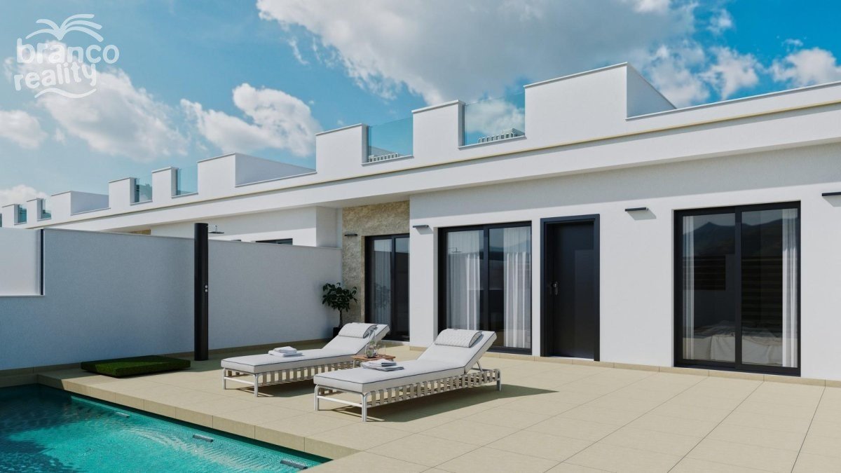 Dvojdomky a řadové vily v Roldánu, Murcia, Španělsko Moderní jednopodlažní vily se soláriem a soukromým bazénem Objevte tento exkluzivní komplex jednopodlažních dvojdomků a řadových vil v Roldánu (Murcia), navržených pro pohodlí, styl a energetickou účinnost. S možností 2 nebo 3 ložnic a 2 koupelen má každá nemovitost soukromé solárium, bazén a parkování na pozemku, ideální pro celoroční užívání si středomořského klimatu. Tento komplex, který se nachází v uzavřeném komplexu s bezpečnostní kontrolou, zaručuje soukromí a klid a zároveň je v blízkosti všech základních služeb, parků, sportovních zařízení a prestižních golfových hřišť. Vysoce kvalitní prvky a funkční design Každá vila byla postavena z nejkvalitnějších materiálů, aby nabídla moderní a pohodlný domov: venkovní PVC tesařské práce s tepelným mostem a dvojitým zasklením. Plně vybavená kuchyň s velkokapacitními skříňkami a bílým zbožím v ceně. Elegantní koupelny se zavěšeným nábytkem, zrcadlem s LED osvětlením a sprchovými zástěnami. Bezpečnostní vstupní dveře pro klid. Předinstalace pro klimatizaci. 3 fotovoltaické solární panely (1,5 kW) pro vyšší energetickou účinnost. Letní kuchyně na soláriu s dřezem a zásuvkou na ledničku. Strategická poloha v Roldanu, Murcia Roldán je okouzlující tradiční vesnice s privilegovanou polohou v regionu Murcia. Nabízí veškeré základní vybavení, jako jsou supermarkety, restaurace, bary, zdravotní kliniky, lékárny, čerpací stanice a další. Tento developerský projekt se navíc nachází jen pár minut od některých z nejlepších golfových hřišť v oblasti, jako jsou La Torre Golf a Terrazas Golf, což nabízí jedinečný zážitek pro milovníky golfu. Vzdálenosti od klíčových zajímavých míst: Letiště Murcia-Corvera - 15 km (15 minut autem). Pláže Mar Menor - 15 km (20 minut autem). Golfová hřiště La Torre a Terrazas - méně než 5 km. Centrum města Murcia - 30 km (30 minut autem). Dokonalý středomořský domov Ať už jako trvalé bydlení, rekreační dům nebo investiční nemovitost, tyto vily v Roldanu nabízejí perfektní kombinaci moderního designu, prvotřídní lokality a kvality života. Kontaktujte nás ještě dnes pro více informací nebo pro sjednání prohlídky vašeho budoucího domu v Roldanu.