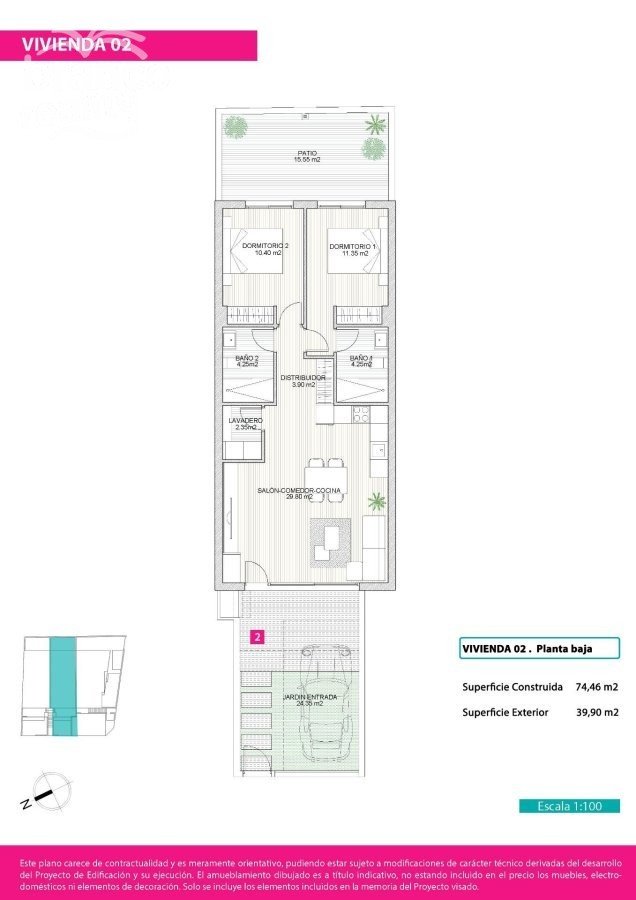 Nově postavené bungalovy v Lo Pagán: Moderní bydlení blízko pláže. Prvotřídní lokalita v Lo Pagán, San Pedro del Pinatar. Objevte dokonalý pobřežní životní styl s těmito nově postavenými bungalovy v Lo Pagán, okouzlující oblasti San Pedro del Pinatar. Nacházejí se pouhých 1,2 km od krásné pláže Villa Nanitos, 15 minut chůze od písečných pláží a ikonického Molino Quintín. Tato prvotřídní lokalita je ideální pro milovníky pláží a vodních sportů, s jachtařskými kluby a přístavy v blízkosti. Navíc je veškerá základní občanská vybavenost, jako jsou supermarkety, bary a restaurace, jen pár minut chůze odtud. Vlastnosti Tyto stylové bungalovy mají 2 ložnice, 2 koupelny, kuchyň s otevřeným prostorem a obývací pokoj. Bungalovy mají předinstalaci pro klimatizaci, vestavěné skříně a moderní interiér. Jednotky v přízemí mají velkou terasu s možností přidání soukromého bazénu (k dispozici za příplatek), zatímco jednotky v horním patře mají soukromé solárium s bazénem, ideální pro relaxaci pod středomořským sluncem. Vysoce kvalitní povrchové úpravy. Každý bungalov má parkovací místo a všechny apartmány mají vysoce kvalitní povrchové úpravy. Mezi vybavení patří kuchyňské spotřebiče Bosch, elektrické rolety, předinstalace pro klimatizaci s potrubím, plně vybavené koupelny a LED osvětlení uvnitř i venku. Ideální pro celoroční bydlení Lo Pagán nabízí klidný životní styl s příjemnou a zavedenou komunitou. Obyvatelé si mohou užívat aktivit po celý rok díky mírnému zimnímu klimatu regionu. Oblast má kryté bazény, sportovní zařízení a širokou škálu společenských akcí. Přírodní bahenní lázně a klidné vody Mar Menor dodávají na atraktivitě a činí z ní privilegované místo pro wellness a relaxaci. Zajímavosti v okolí Nákupní centrum Dos Mares: 5 minut autem Letiště Murcia (Corvera): 30 minut autem Letiště Alicante: 1 hodina autem Golfová hřiště a přístavy jsou v dosahu jízdy autem, což z něj činí vynikající místo pro volný čas i pohodlí.
