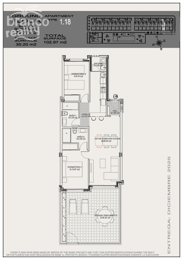 Nový rezidenční komplex v Torrevieji, pouhý 1 km od moře Moderní apartmány se 2 a 3 ložnicemi Tento nový rezidenční komplex se nachází v pulzující čtvrti Altos del Sol v Torrevieji a nabízí řadu apartmánů se 2 a 3 ložnicemi. Jednotky v přízemí mají soukromé zahrady, zatímco jednotky v horním patře mají soukromá solária pro exkluzivní relaxaci venku. Komplex navíc zahrnuje jeden řadový dům, který uspokojí ty, kteří hledají více prostoru a soukromí. Každá jednotka zahrnuje podzemní parkovací místo a volitelné úložné prostory. Prostorné společné prostory a vybavení pro rodiny s dětmi Rezidenční komplex je promyšleně navržen s dostatkem společných prostor a upravenými zahradami, které vytvářejí klidné prostředí. Rodiny si mohou užít velký společný bazén s vyhrazenou dětskou zónou, ideální pro relaxaci a trávení času pod teplým středomořským sluncem. Komplex se nachází asi 1 km od pláže „Playa de Los Locos“ a nabízí obyvatelům pohodlný přístup na pláž. Špičkové povrchové úpravy a energeticky úsporné prvky Tyto domy vynikají svou vysoce kvalitní povrchovou úpravou a důrazem na detail. Každá jednotka je vybavena fotovoltaickým solárním panelem o výkonu 600 W, který poskytuje ekologické energetické řešení. Mezi další prémiové prvky patří vestavěné grily na soláriích, obrněné vchodové dveře, vestavěné skříně s vnitřním vybavením, koupelnový nábytek se sprchovými zástěnami a podlahové vytápění v koupelnách, které zajišťují pohodlí a styl v každém koutě. Ideální poloha v blízkosti služeb a atrakcí Tento komplex se nachází v blízkosti všech základních služeb, což z něj činí výhodnou polohu jak pro stálé obyvatele, tak pro ty, kteří hledají rekreační bydlení. Altos del Sol je známý svou dobrou dopravní dostupností s místními obchody, restauracemi a zábavními podniky v docházkové vzdálenosti. Letiště Alicante-Elche je vzdálené 45 minut jízdy (43 km) a nákupní centrum Habaneras je vzdálené pouhé 3 km a nabízí komplexní nákupní zážitek. Zažijte středomořský životní styl v Torrevieji Torrevieja, která se nachází v jižním Alicante, nabízí typický středomořský zážitek. S více než 300 slunečnými dny v roce a průměrnou roční teplotou 20 °C si obyvatelé mohou užívat krásného počasí po celý rok. Město je proslulé svou bohatou gastronomií, která zahrnuje čerstvé suroviny z moře i místních farem. Torrevieja se navíc pyšní malebnými plážemi, promenádami, muzei a řadou aktivit vhodných pro rodiny s dětmi, což zajišťuje životní styl plný volného času a relaxace. Prozkoumejte Torrevieju. Ať už hledáte pulzující přímořskou komunitu nebo klidné útočiště, tento developerský projekt nabízí jedinečnou příležitost vychutnat si to nejlepší z pobřežního kouzla Torrevieji. Zažijte vše, co toto krásné město nabízí, od teplého klimatu až po bohaté kulturní a kulinářské dědictví.