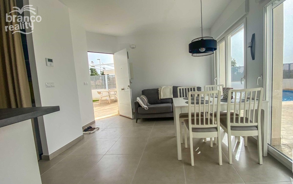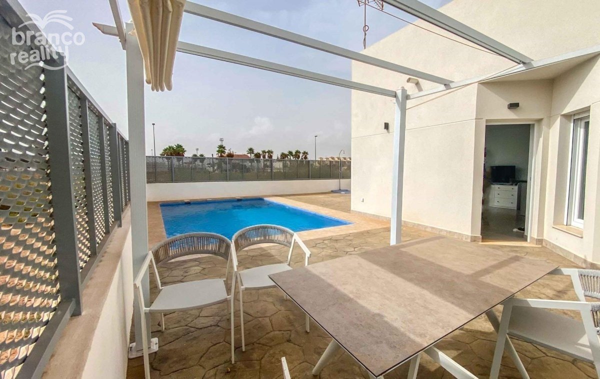NOVOSTAVBA POLOVIČNÍCH VILL V LOS ALCAZARES Tyto prostorné, dobře navržené vily jsou postaveny ve dvojicích. Každá vila má svůj vlastní soukromý pozemek o rozloze 175 m2 s dostatečnými terasami, bazénem a zahradou na třech stranách vily. Věříme, že tyto vily nabízejí nejlepší poměr ceny a kvality ve Španělsku – nabízíme poloviční vilu s více než 100 m2 terasy (solárium lze přidat za příplatek), bazénem nebo zahradou za cenu bytu. Vily byly navrženy s ohledem na venkovní bydlení. Obývací pokoj má dvoje velké dvoukřídlé dveře s výhledem na terasu a bazén, ideální pro venkovní stolování. Prostorné terasy vpředu i vzadu zajišťují, že se majitelé mohou opalovat po celý den. Vily mají moderní vybavené kuchyně s výběrem barev kuchyňských linek a obkladů v kuchyních i koupelnách, podlah a teras. Dvě pohodlné dvoulůžkové ložnice mají vestavěné skříně. Jedna ložnice má vlastní koupelnu se sprchovým koutem a druhá ložnice má sprchový kout pro hosty. Zahrady jsou obklopeny 40cm zdí s živým plotem pro soukromí vpředu s brankami. Kupující se mohou rozhodnout zvýšit výšku zdi kolem zadní zahrady až na 180 cm (5 stop 10 palců) nebo přidat plot či živý plot pro soukromí. Za příplatek je k dispozici obrovská střešní sluneční terasa s točitým schodištěm. Každá vila má prostornou garáž, kterou lze také využít jako hobby místnost nebo studio. Za příplatek je možné přidat bazény nebo vířivky. Máme k dispozici plány na výstavbu třetí ložnice na střeše vil. Rezidenční komplex vil se nachází 1 km od pláže a města Los Alcázares, kde se můžete věnovat různým vodním sportům, obklopen několika golfovými hřišti. Město Cartagena je vzdálené méně než 15 minut jízdy autem a 30 minut od letiště Murcia Corvera.