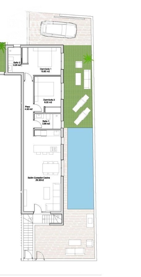 Novostavby bungalovů se soukromým bazénem v Santiagu de la Ribera Moderní domy pouhých 800 metrů od pláže Objevte tento exkluzivní nový komplex osmi moderních apartmánů v Santiagu de la Ribera, pouhých 800 metrů od moře. Tyto domy, navržené s moderní estetikou a vysoce kvalitními povrchovými úpravami, nabízejí prostorné interiéry, soukromé venkovní prostory a špičkové vybavení. Možnosti nemovitosti – přízemí nebo penthousy Vyberte si dům, který nejlépe vyhovuje vašemu životnímu stylu: Bungalovy v přízemí: Užijte si soukromou zahradu, parkovací místo a soukromý bazén. Penthousy v nejvyšším patře: Nabízejí vyhrazené parkovací místo, soukromou terasu a rozlehlé solárium se soukromým bazénem, ideální pro relaxaci nebo zábavu. Všechny domy jsou k dispozici se 2 nebo 3 ložnicemi a 2 koupelnami, což poskytuje flexibilitu pro různé potřeby. Vysoce kvalitní povrchové úpravy pro pohodlí a styl Každý dům je vybaven prvotřídními materiály a energeticky úspornými systémy, včetně: Zesílených bezpečnostních vstupních dveří Hliníkových oken s tepelnou přepážkou pro lepší izolaci Kuchyňských spotřebičů Bosch Aerothermální systém pro účinnou ohřev vody Skleněné sprchové zástěny ve všech koupelnách Plně instalovaný systém klimatizace s potrubím Nachází se v okouzlujícím pobřežním městě Santiago de la Ribera a nabízí perfektní kombinaci klidu a pohodlí. Původně tradiční rybářská vesnice se proměnila ve vyhledávanou destinaci na pobřeží Costa Cálida, známou svým středomořským životním stylem, zlatavými písečnými plážemi a vynikajícím vybavením. Město se pyšní 4 km pláží podél Mar Menor s klidnou, teplou vodou ideální pro koupání a vodní sporty. Podél pobřeží se táhne krásná promenáda lemovaná palmami, která poskytuje ideální prostředí pro procházky, cyklistiku a posezení v přímořských restauracích. Vynikající dopravní spojení a blízké atrakce Pláž (Playa de Santiago de la Ribera) – 800 m Letiště Murcia-Corvera – 30 km Letiště Alicante – 95 km Golfová hřiště (Roda Golf, La Serena Golf, Lo Romero Golf) – 10-15 km Nákupní centrum Dos Mares – 3 km Přístav a námořnický klub – 1,5 km Váš vysněný domov u moře na vás čeká Ať už hledáte rekreační útočiště, investiční příležitost nebo trvalý pobyt, tyto bungalovy nabízejí moderní komfort v bezkonkurenční pobřežní lokalitě. Kontaktujte nás ještě dnes pro více informací a pro sjednání prohlídky!