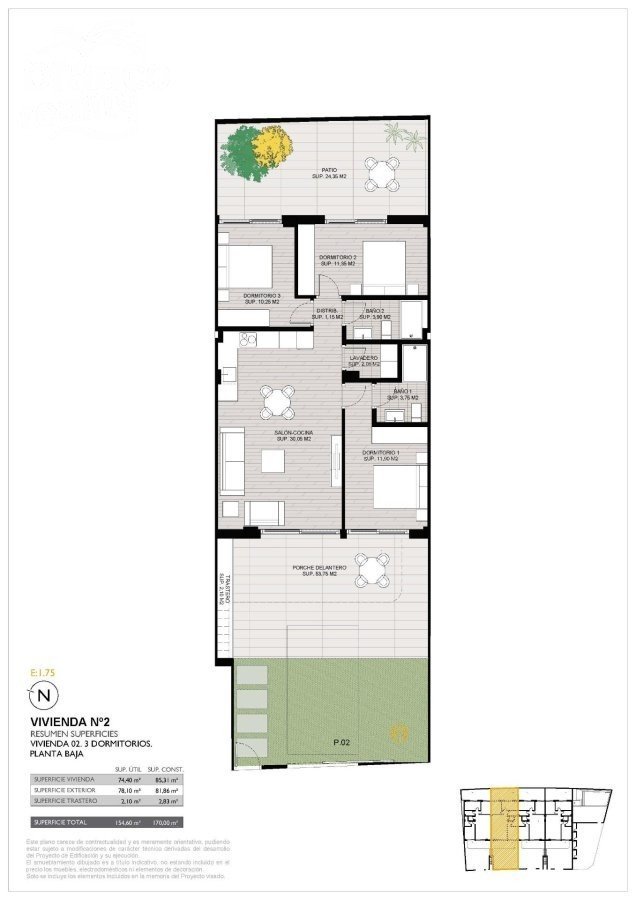 Novostavby bungalovů v San Pedro del Pinatar – Moderní bydlení u moře Exkluzivní rezidenční komplex s moderními bungalovy Objevte tento nový rezidenční komplex 8 moderních bungalovů v San Pedro del Pinatar, jedné z nejžádanějších lokalit na pobřeží Costa Cálida. Tyto moderní domy nabízejí 3 ložnice, 2 koupelny, otevřenou kuchyň s prostorným obývacím pokojem, vestavěné skříně a soukromou terasu. Můžete si vybrat mezi: Bungalovy v přízemí se soukromou zahradou a parkováním na pozemku. Bungalovy v horním patře se soukromým soláriem, ideální pro užívání si středomořského klimatu. Vysoce kvalitní prvky v každém domě Každý bungalov zahrnuje špičkové povrchové úpravy a moderní prvky pro maximální pohodlí: Klimatizační jednotka je součástí dodávky. Aerotermální systém pro energeticky úspornou ohřev vody. Plně vybavená kuchyň se spotřebiči BOSCH. Plně vybavené koupelny s nábytkem, zrcadly, sprchovými zástěnami a elektrickým podlahovým vytápěním. Elektrické rolety na všech oknech. LED osvětlení v celém interiéru i exteriéru nemovitosti. Další vybavení bungalovů v horním patře: Hliníková pergola pro stín a styl. Venkovní letní kuchyně, ideální pro zábavu. Soukromé parkovací místo a úschovna kol. Vybavení komunity Obyvatelé tohoto exkluzivního komplexu si užijí: Krásně upravený společný prostor. Společenský bazén k relaxaci a osvěžení. Vynikající poloha v San Pedro del Pinatar San Pedro del Pinatar je privilegované pobřežní město ležící mezi Mar Menor a Středozemním mořem. Je známé svými plážemi, přírodními bahenními lázněmi a vynikajícím námořnickým vybavením, včetně přístavů a jachtařských klubů. Oblast je rájem pro milovníky vodních sportů a nabízí uvolněný středomořský životní styl se všemi základními službami v okolí. San Pedro del Pinatar se pyšní zavedenou celoroční komunitou s přístupem ke sportovním zařízením, krytému bazénu a pulzující společenskou scénou díky mírnému zimnímu klimatu regionu. Slavná oblast Lo Pagán se výrazně rozrostla a nabízí celou řadu vybavení, obchodů, restaurací a možností zábavy. Vzdálenosti od klíčových zajímavých míst Nákupní centrum Dos Mares – 5 minut. Pláže Mar Menor – 10 minut. Letiště Murcia-Corvera – 30 minut. Letiště Alicante – 1 hodina. Investujte do kvality a životního stylu. Tyto moderní bungalovy nabízejí výjimečnou příležitost vlastnit domov v jedné z nejvyhledávanějších oblastí Costa Cálida. Ať už jako rekreační útočiště, investici nebo trvalé bydlení, je to vaše šance si užít středomořský životní styl. Kontaktujte nás ještě dnes a domluvte si prohlídku a zajistěte si svůj vysněný domov v San Pedro del Pinatar!